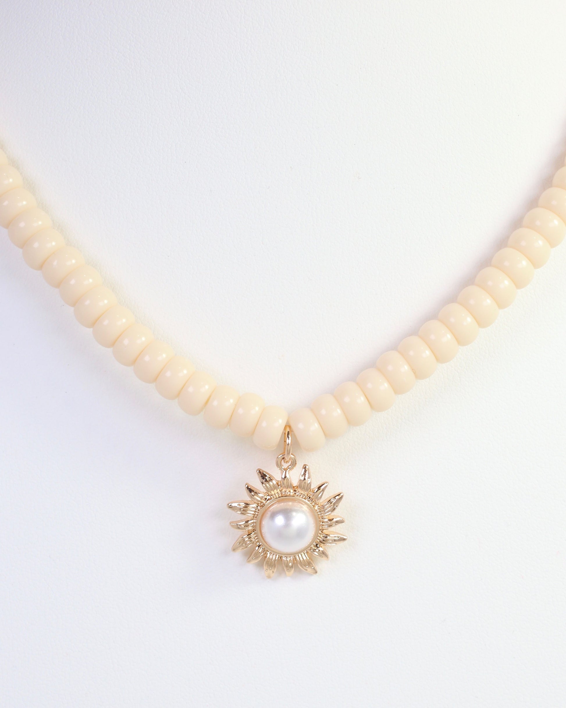 Delicate ivory beaded flower necklace with precision craftsmanship. Lightweight and elegant, perfect for any occasion.