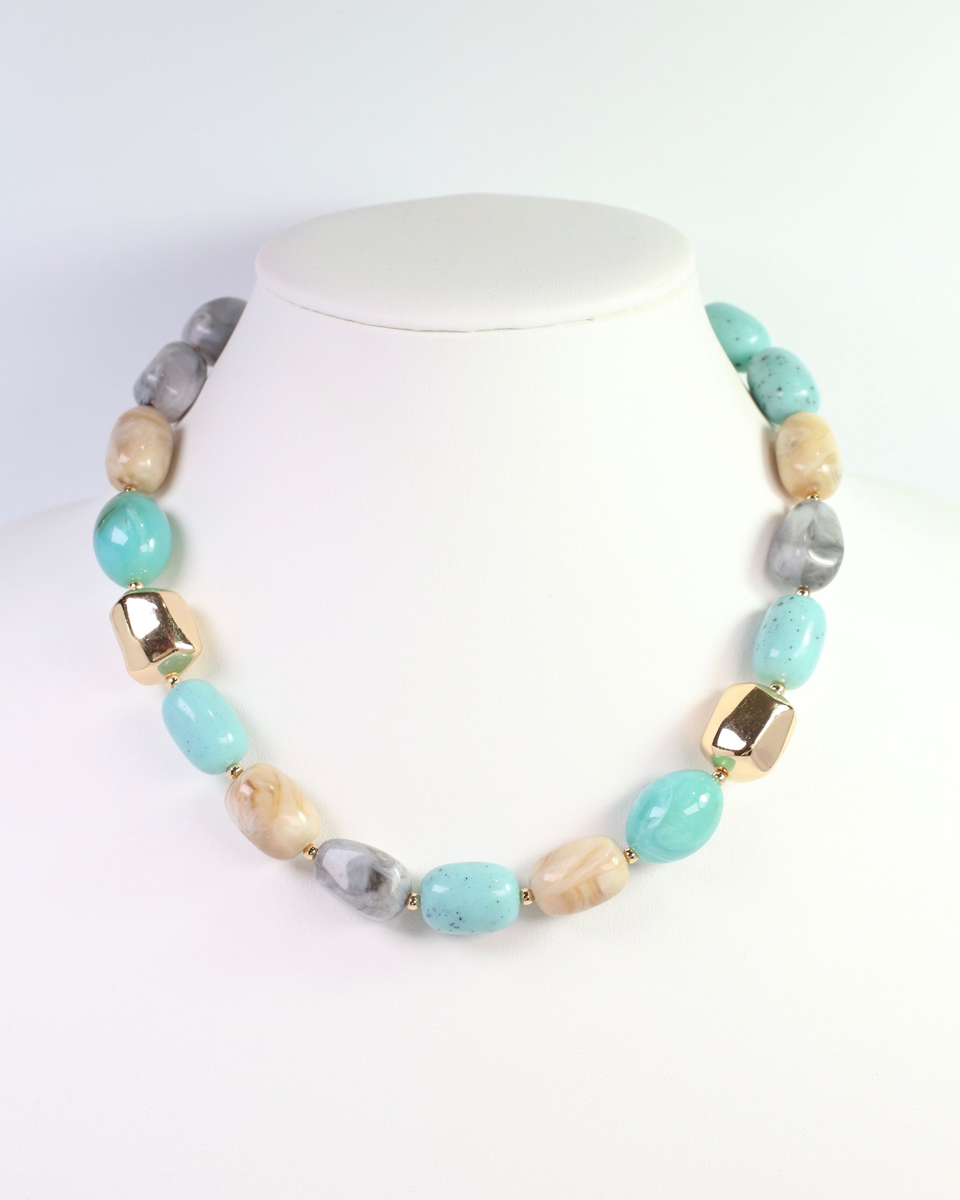 Turquoise stone beads meet gleaming gold accents in this breezy Aberdeen necklace. Light, luminous, and effortlessly coastal—the perfect piece for capturing that carefree beachy aesthetic.