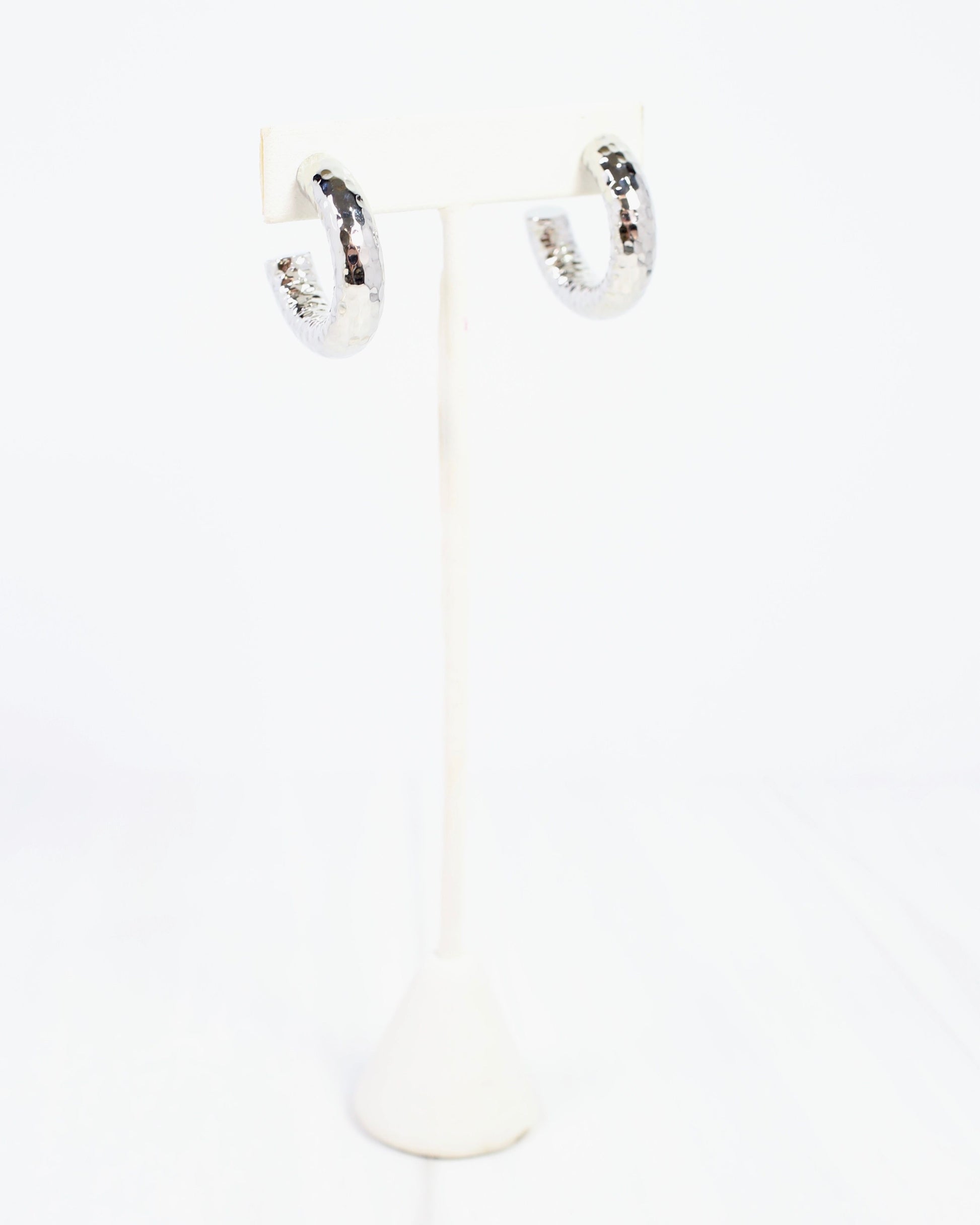 Elevate your everyday style with the Agatha Hoop Earring in Silver. Crafted from white gold-dipped brass, this hammered shiny hoop offers a subtle texture that catches the light beautifully. Its classic yet modern design makes it an essential accessory for effortless daily wear, adding a polished finish to any outfit.