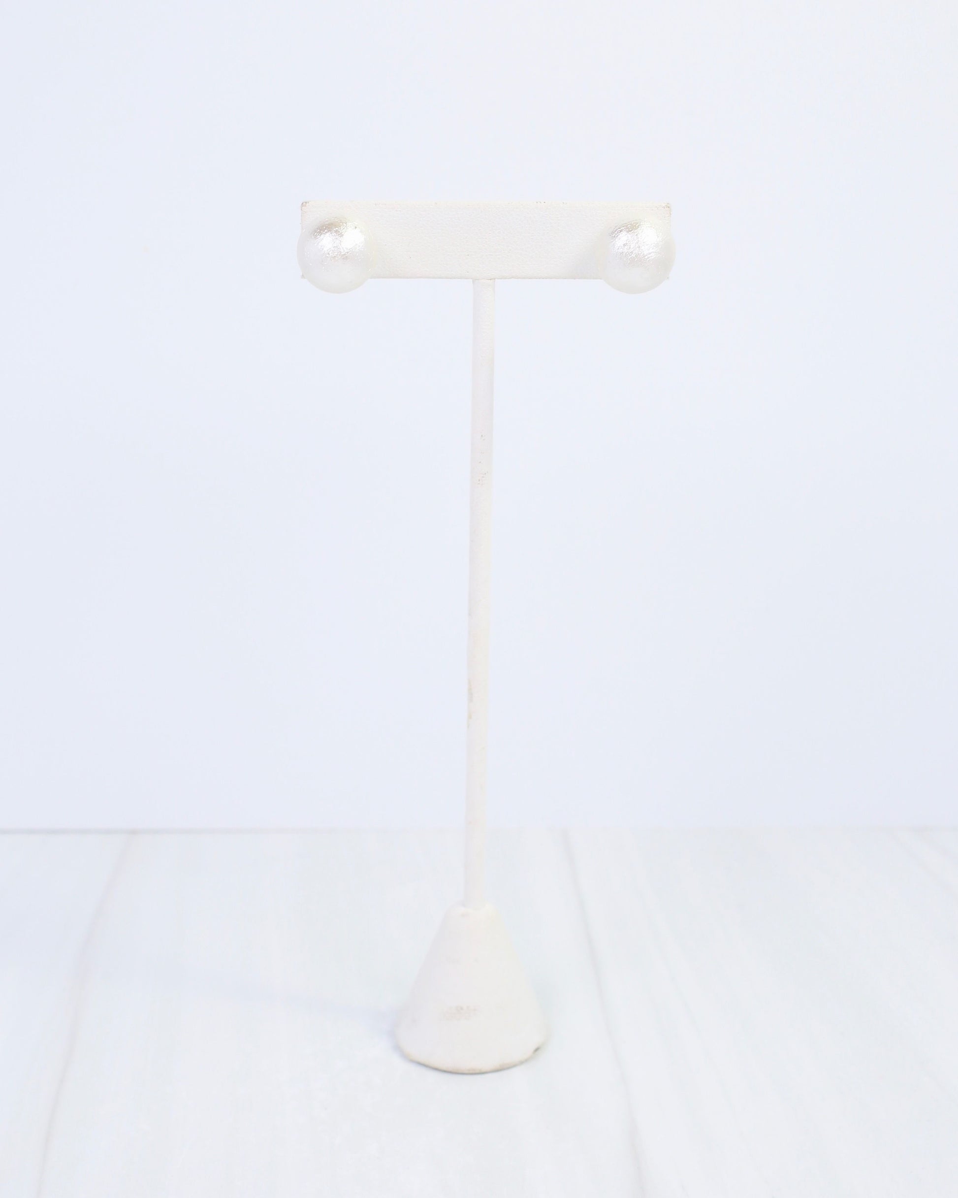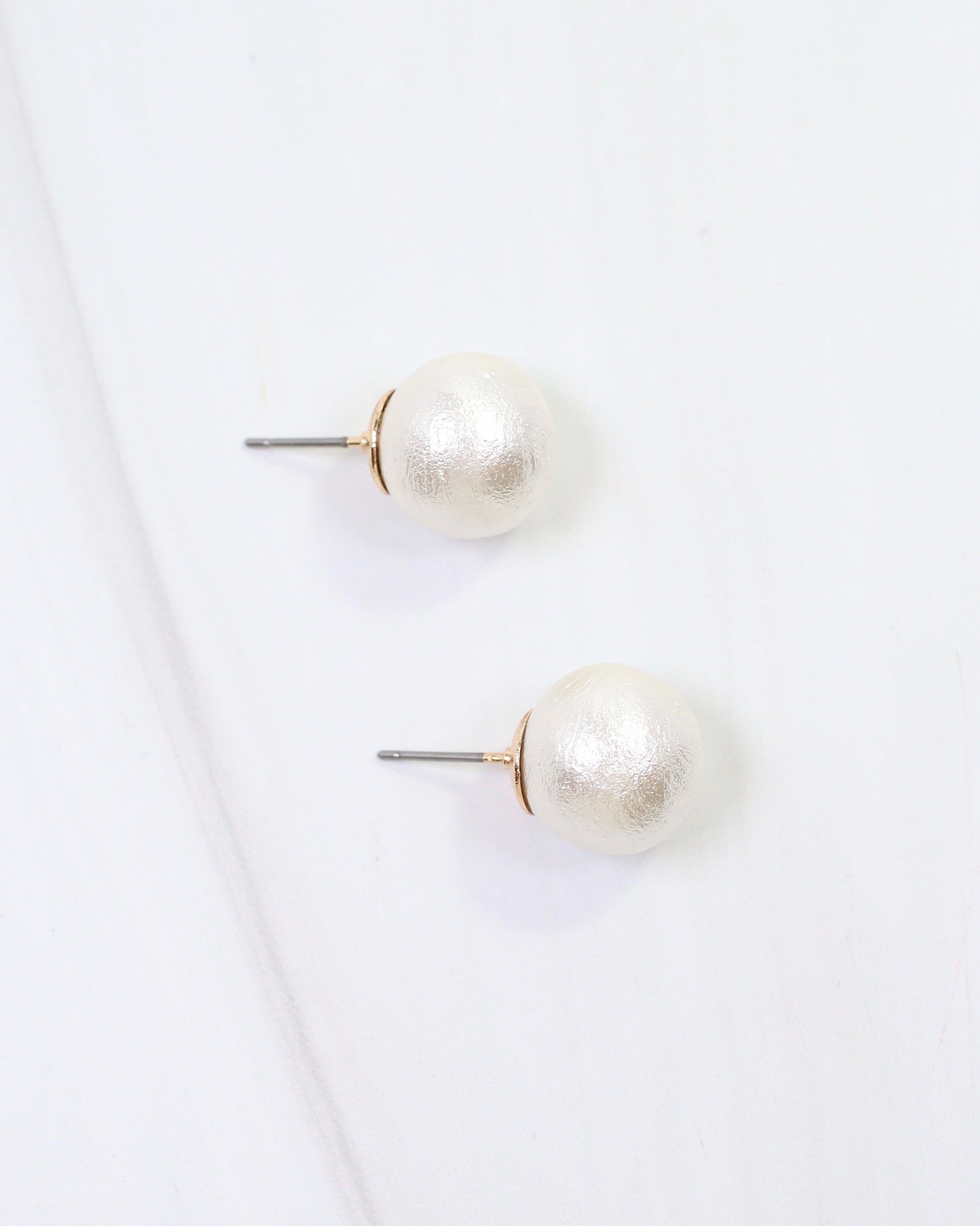 Elegant cream-colored pearl stud earrings with a delicate textured finish. The Alina design features lustrous pearls set in a timeless stud style, perfect for everyday wear or special occasions. Lightweight and comfortable for all-day elegance. A versatile addition to any jewelry collection that pairs effortlessly with any outfit.