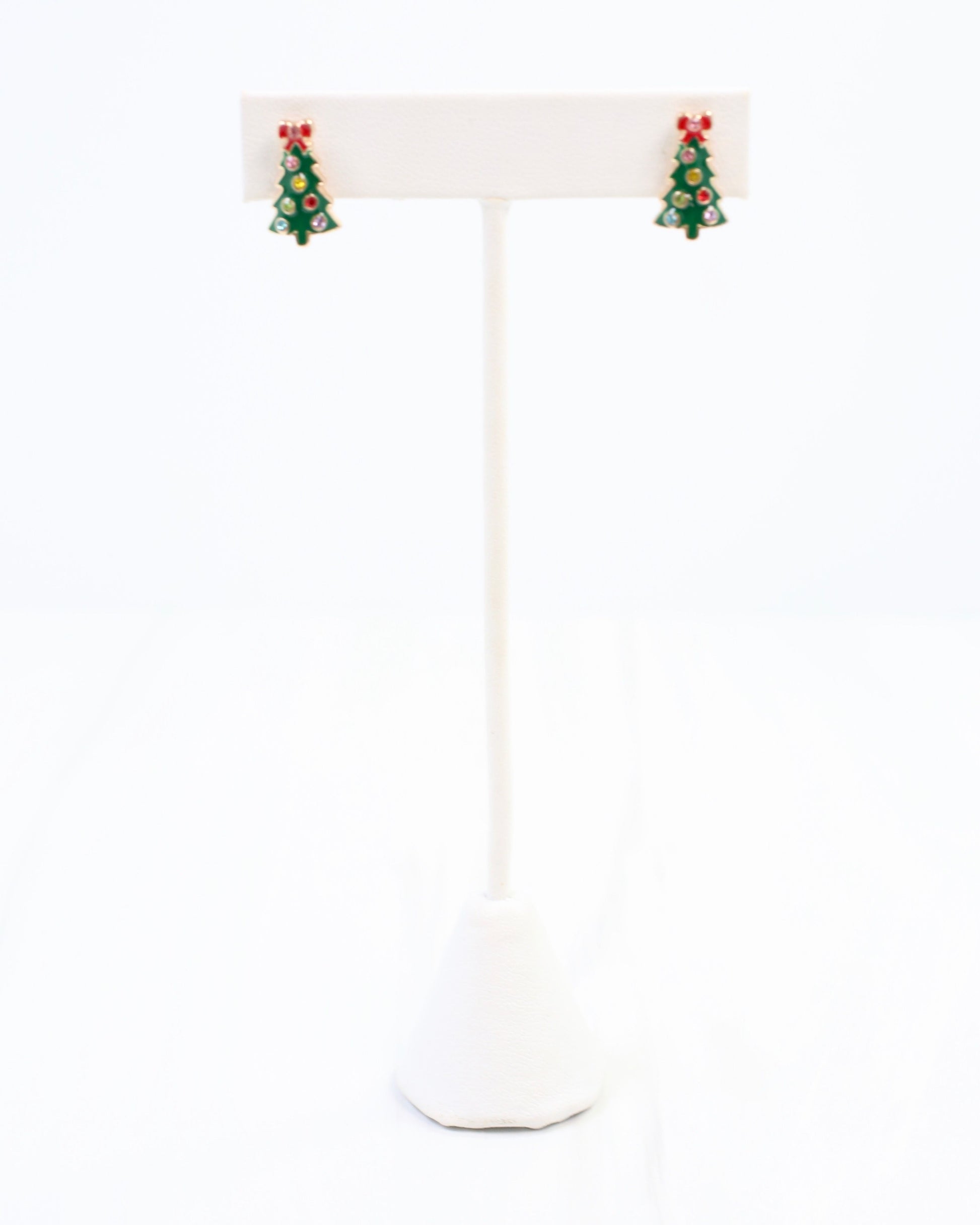 Add a festive touch to any outfit with the All is Calm Christmas Tree Stud in Multi. This petite green enamel tree features sparkling multicolor crystal ornaments and a charming red bow, creating a fashionable and delicate holiday accessory that effortlessly captures seasonal spirit.