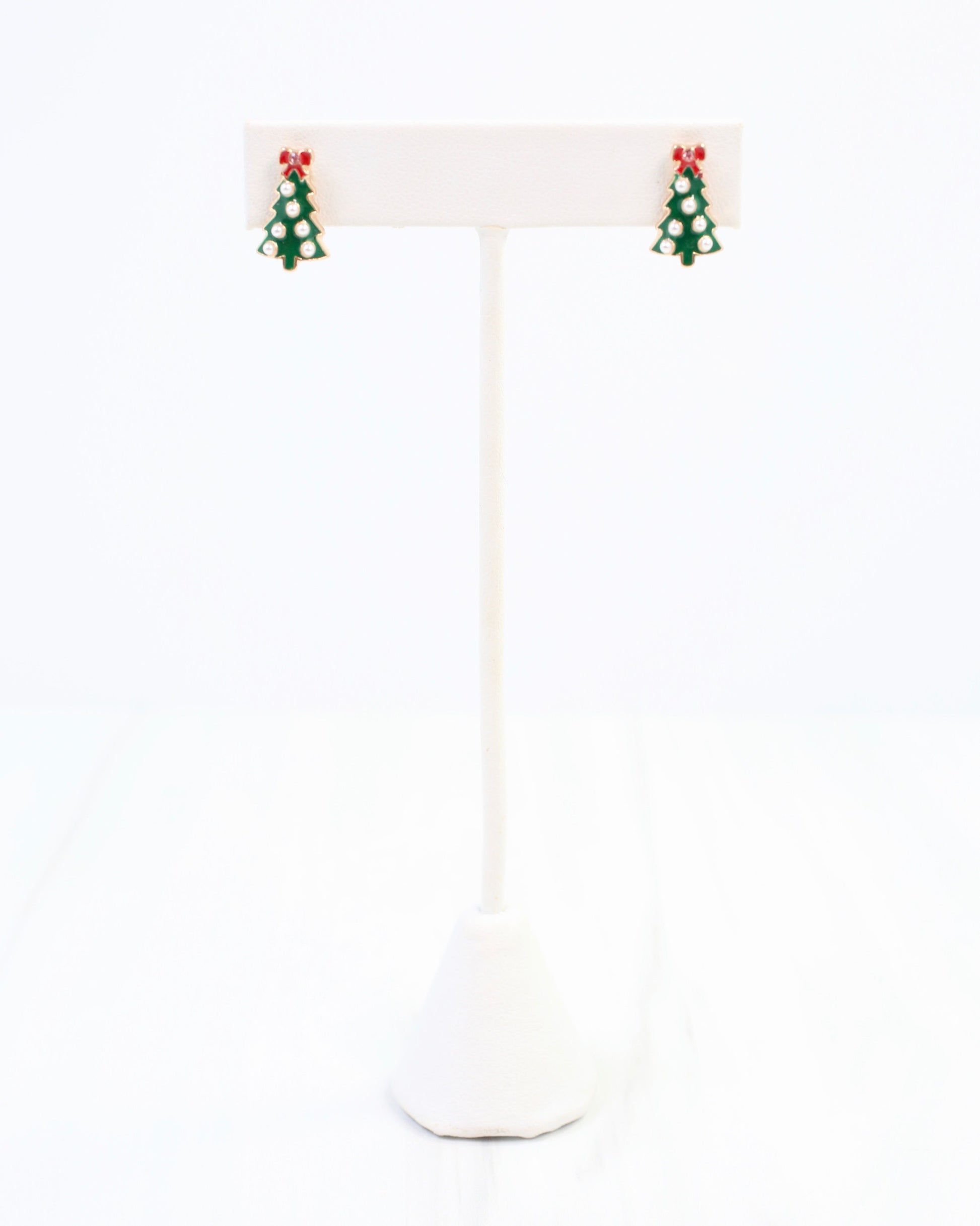 Add a festive touch to any outfit with the All is Calm Christmas Tree Stud in Pearl. This petite green enamel tree features sparkling adorable pearl ornaments and a charming red bow, creating a fashionable and delicate holiday accessory that effortlessly captures seasonal spirit.
