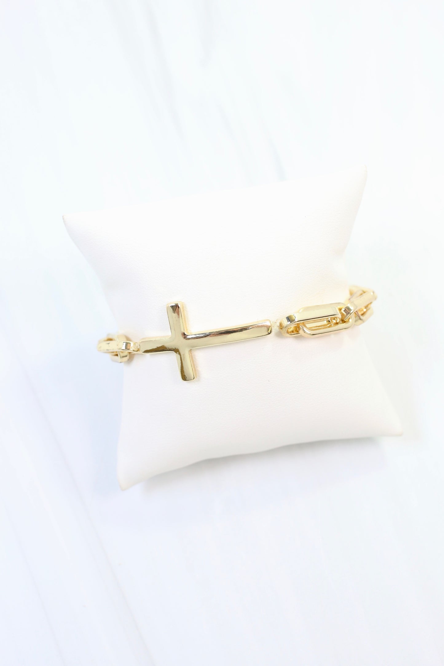 Amelia Link and Large Cross Stretch Bracelet Gold