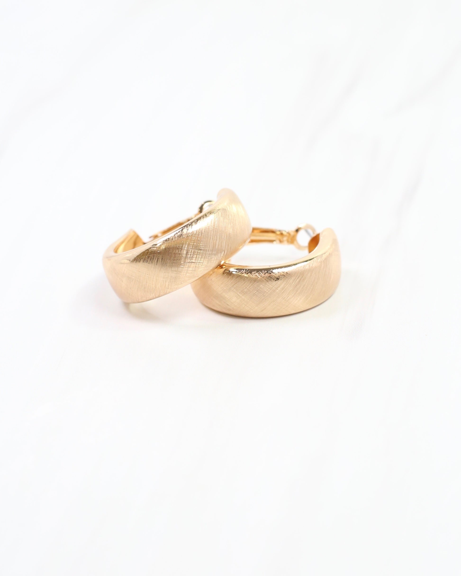 The Anchorage Hoop Earring in Gold combines wide hoops with a secure latch-back closure for reliable comfort. Its gold finish features a subtle scratch texture, creating an elegant and chic accessory that adds a stylish touch to any outfit.
