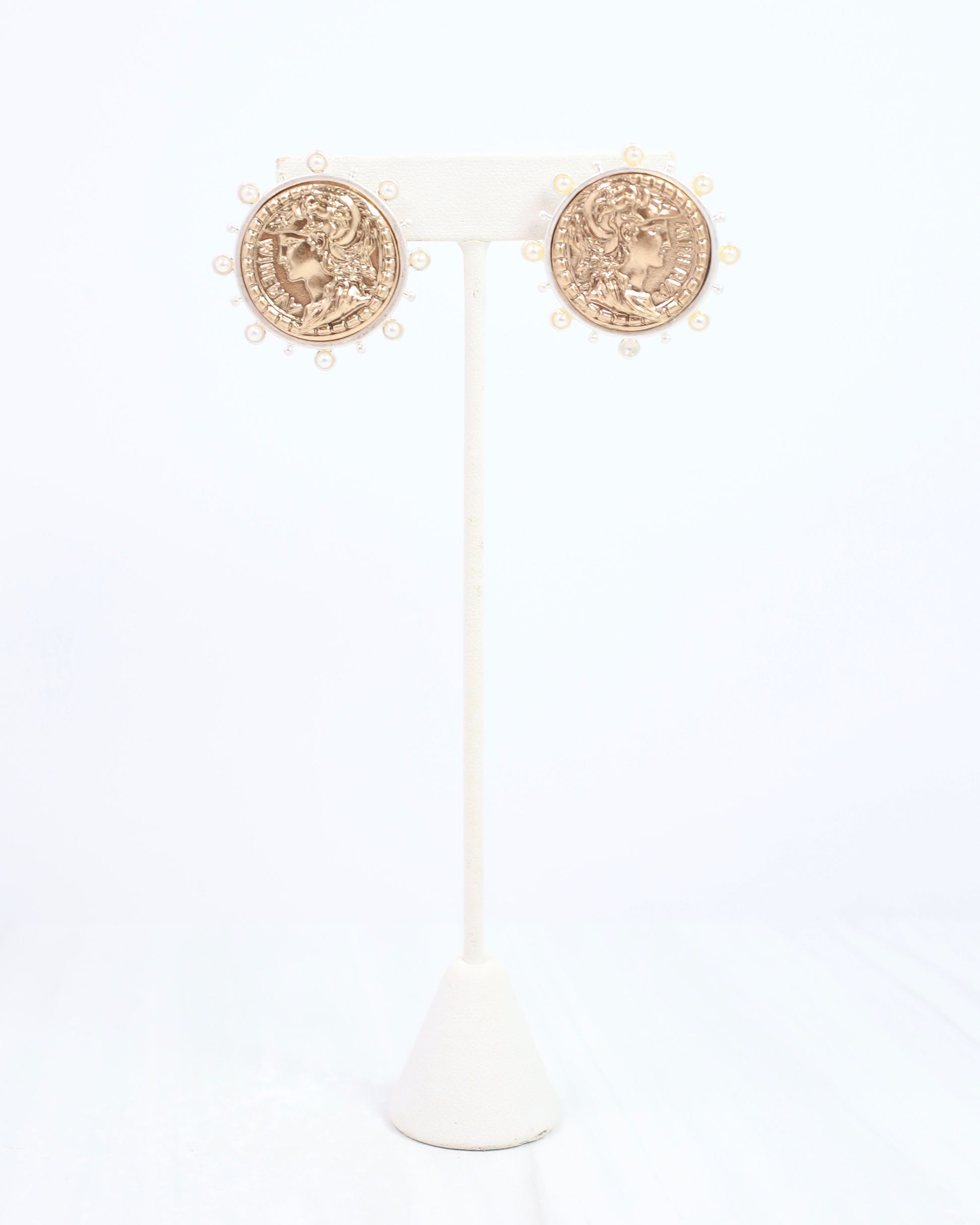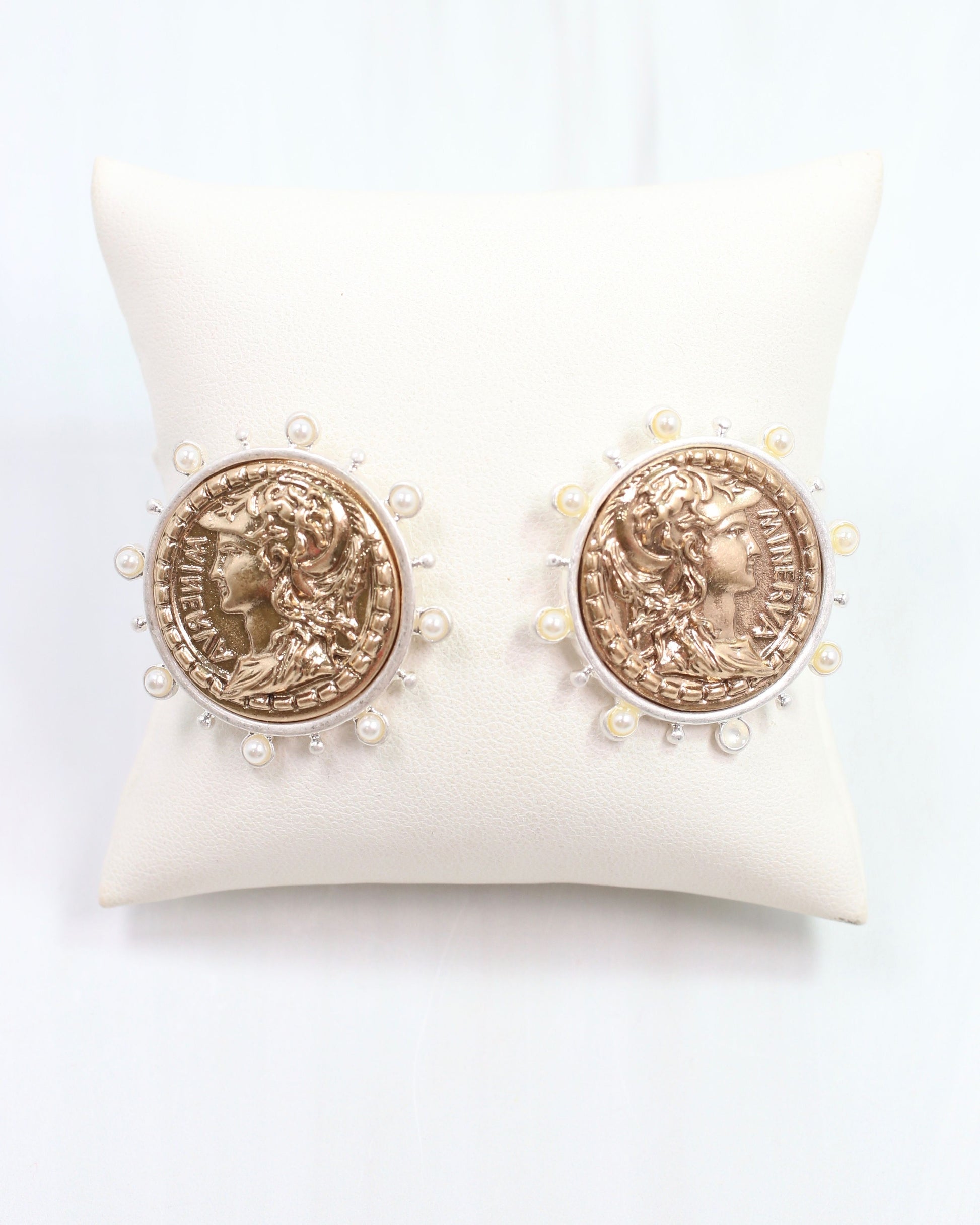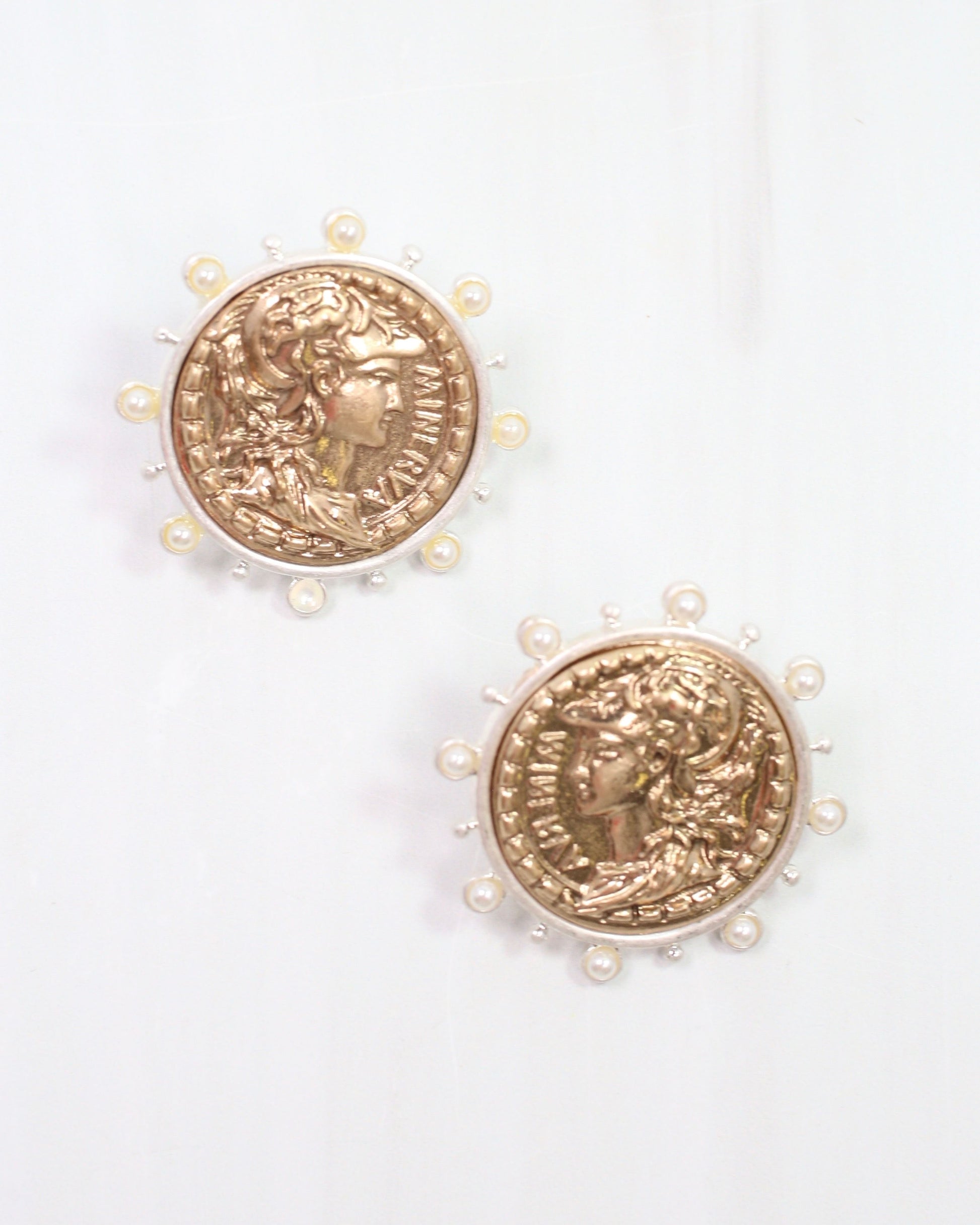 Add a touch of vintage charm with the Anna Kate Coin Earring in Worn Gold. Featuring a classic worn gold coin framed by a worn silver edge and playful pearl bead detailing, these earrings bring a whimsical yet timeless vibe to any outfit.