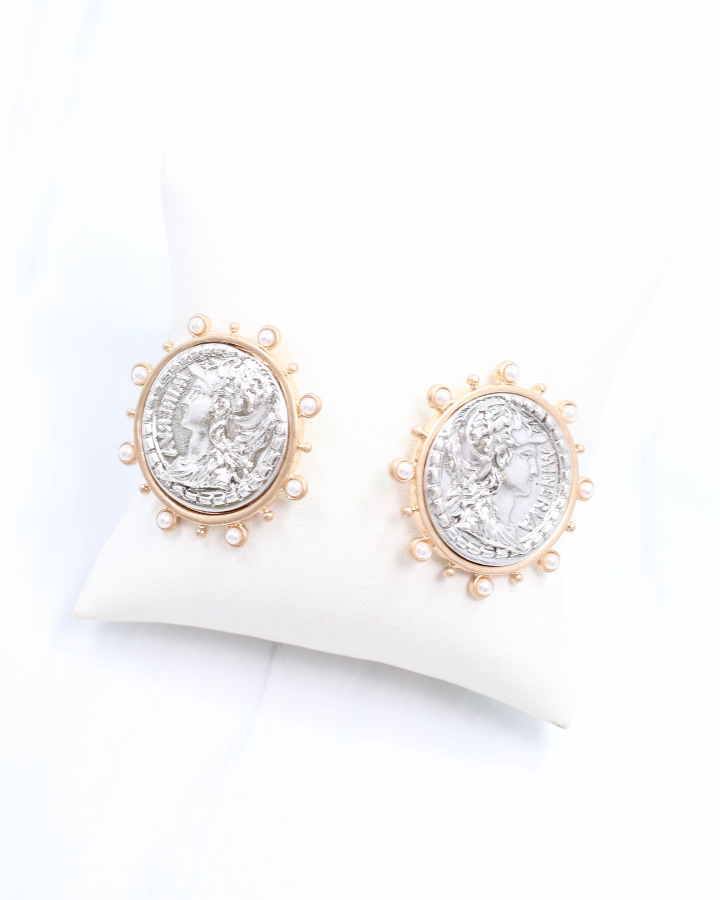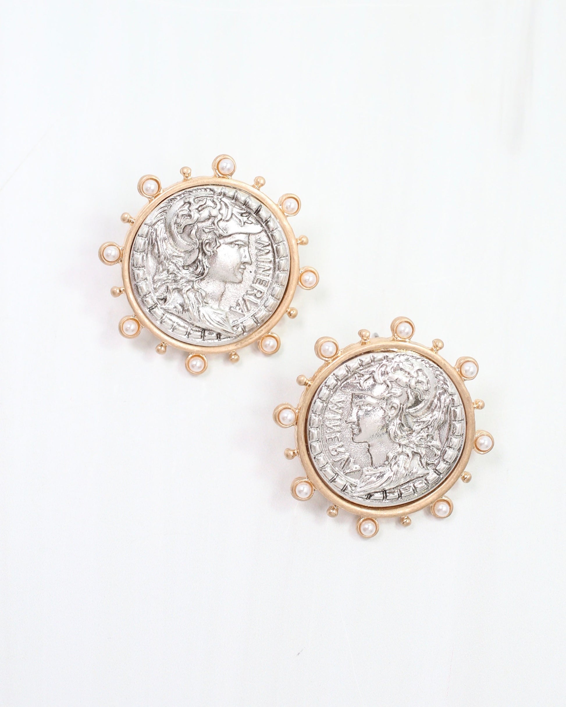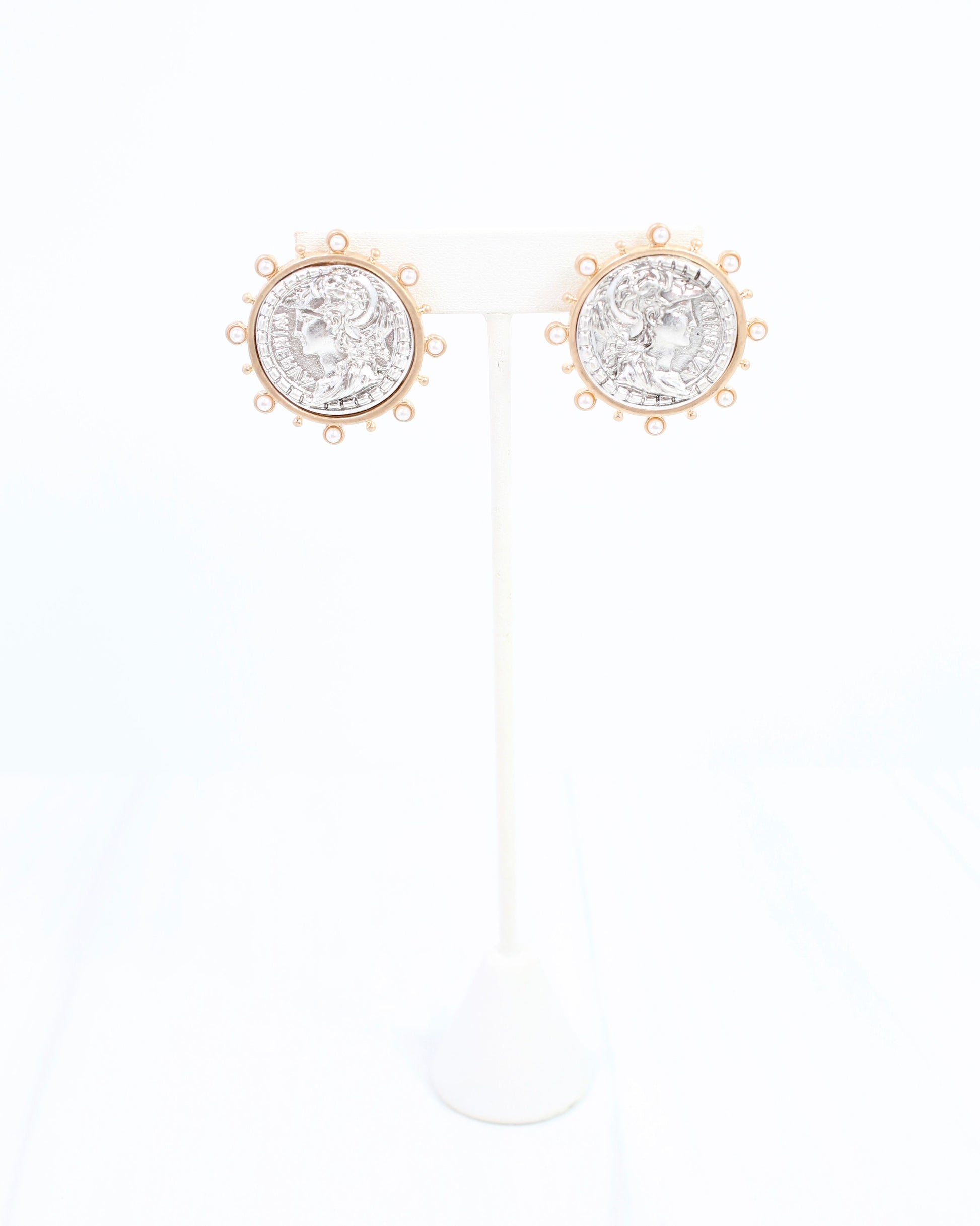 Add a touch of vintage charm with the Anna Kate Coin Earring in Worn Silver. Featuring a classic silver coin framed by a worn gold edge and playful pearl bead detailing, these earrings bring a whimsical yet timeless vibe to any outfit.