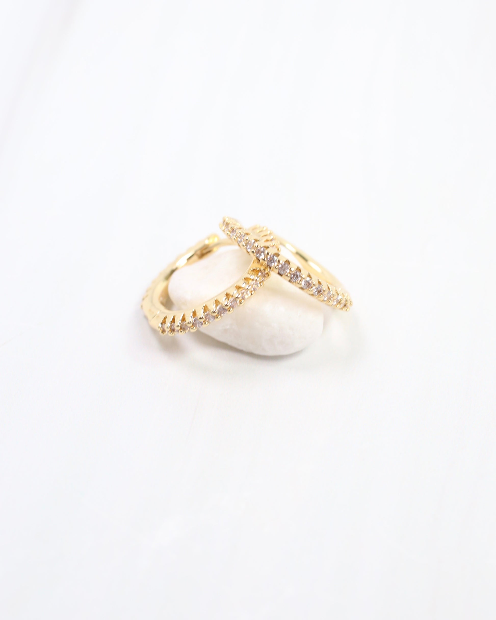 Add a dash of sparkle with the Annalise Pave CZ Hoop Earrings in Gold! These slim, hinged hoops are dipped in gleaming gold and lined with dazzling CZ stones that shimmer all the way around. Perfect for adding a little shine to your day or night look, they’re delicate yet eye-catching—making them your new go-to hoops for effortless glam.