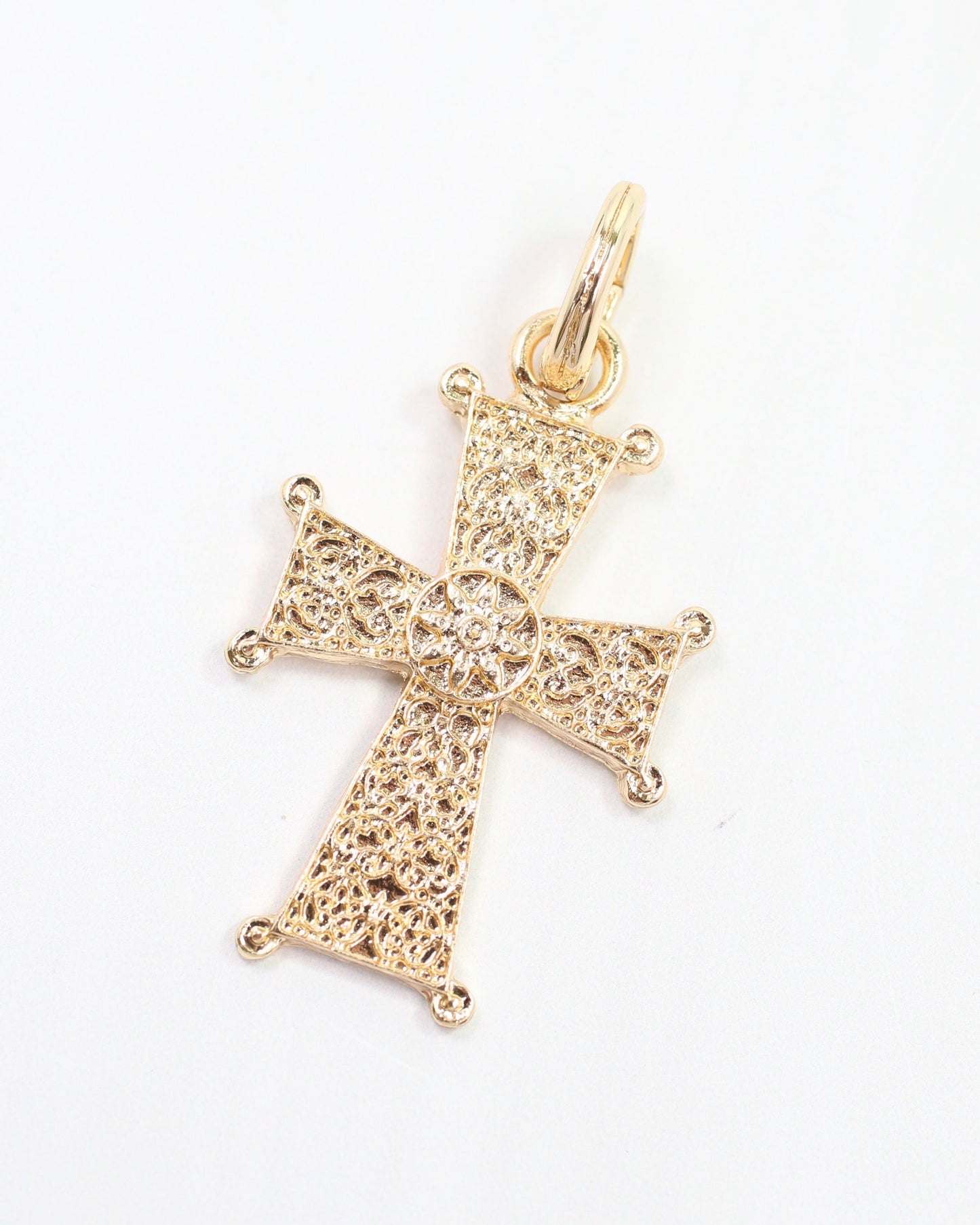 Add a touch of charm with the Artemis Cross Charm in gleaming gold. Its textured design features a bold center circle and playful dot details at each corner, making it a fun and stylish accent for any jewelry collection. Perfect for layering or wearing solo to brighten your day!