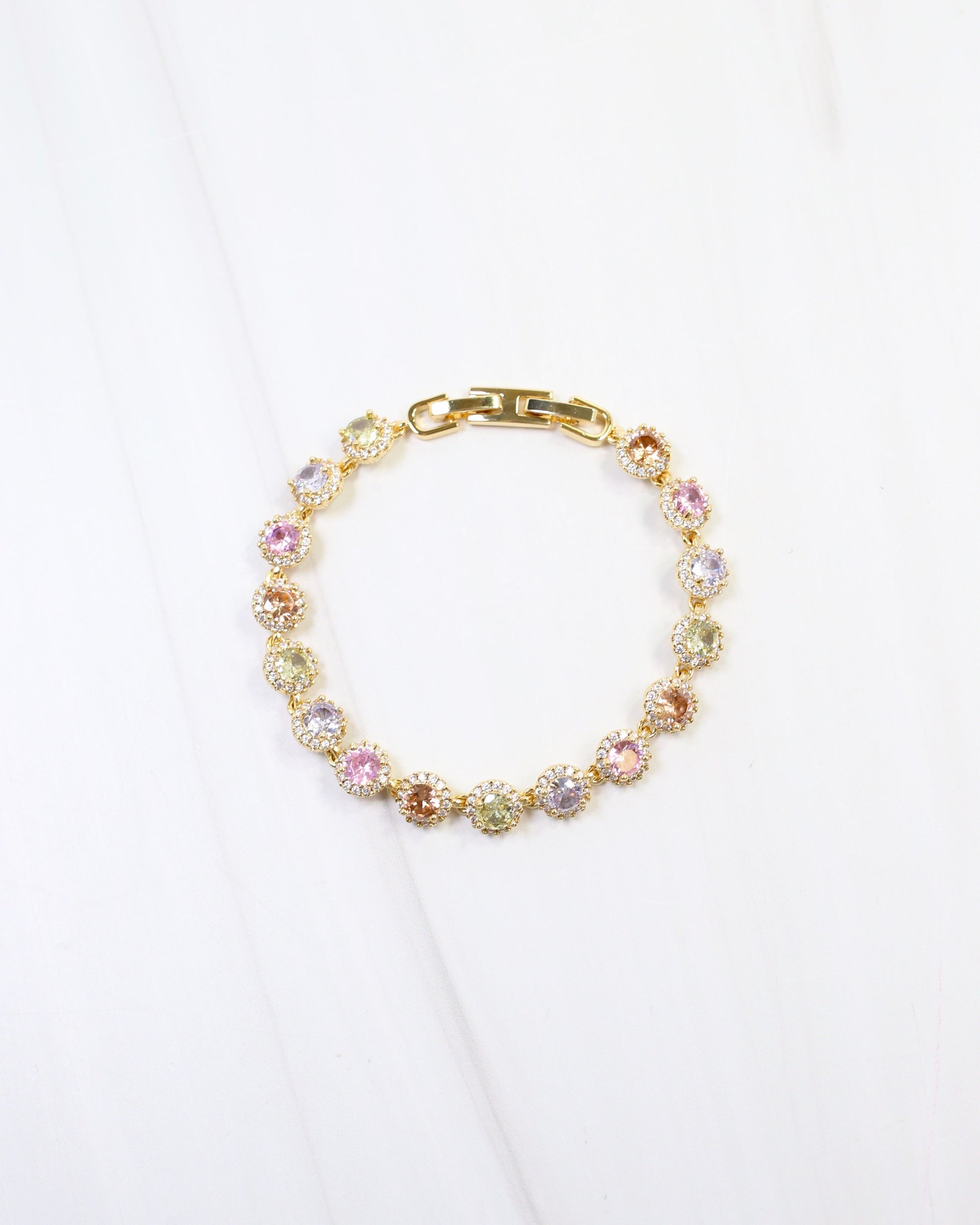 Elevate your wrist with the Artesia Crystal Bracelet in luxurious gold. This stunning piece features shimmering crystals that catch the light beautifully, creating an eye-catching sparkle with every movement. The refined gold setting provides a sophisticated backdrop for the brilliant stones, making it an ideal choice for both special occasions and elevated everyday styling. A timeless accessory that exudes elegance and glamour.
