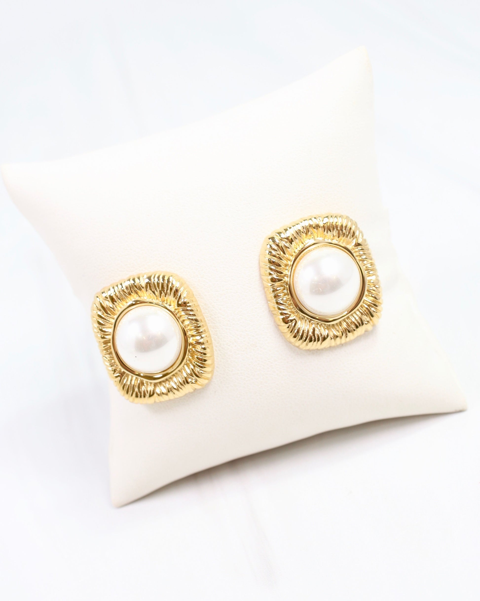 Elevate your look with the Aspen Pearl Textured Stud Earring in Gold. Featuring a rounded rectangular shape and a striking pearl centerpiece, this earring blends texture and elegance effortlessly.