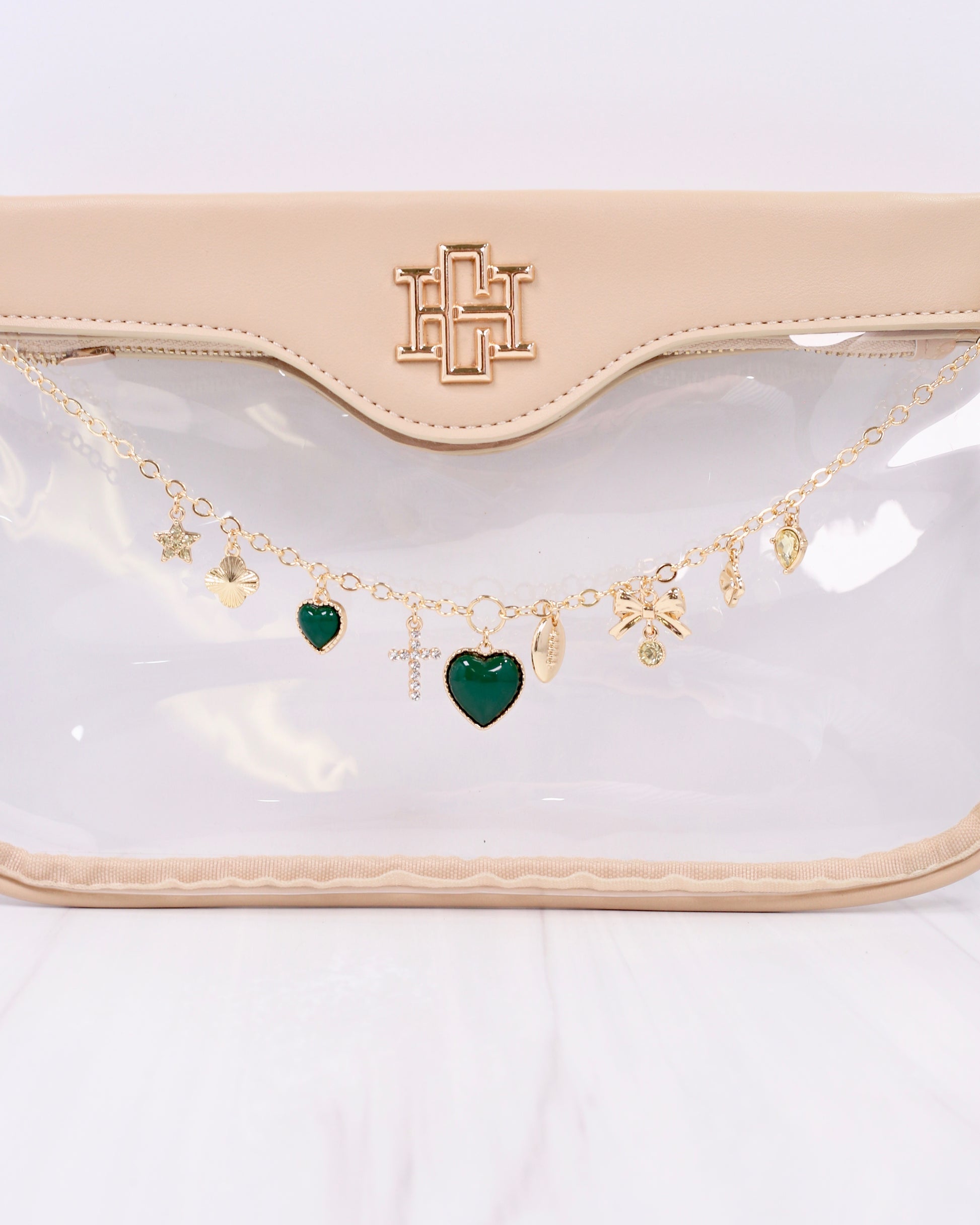 Add a stylish touch to your gameday look with the Avery Bag Chain in Green. This charming accessory pairs beautifully with our Serafina Scarf Chain for a layered, fashionable statement. Show your spirit effortlessly while keeping your bag on trend and uniquely yours.