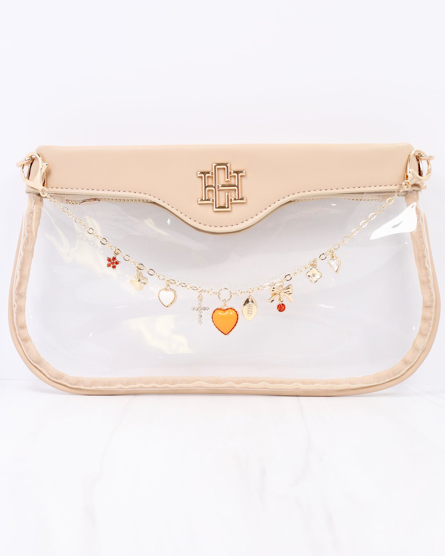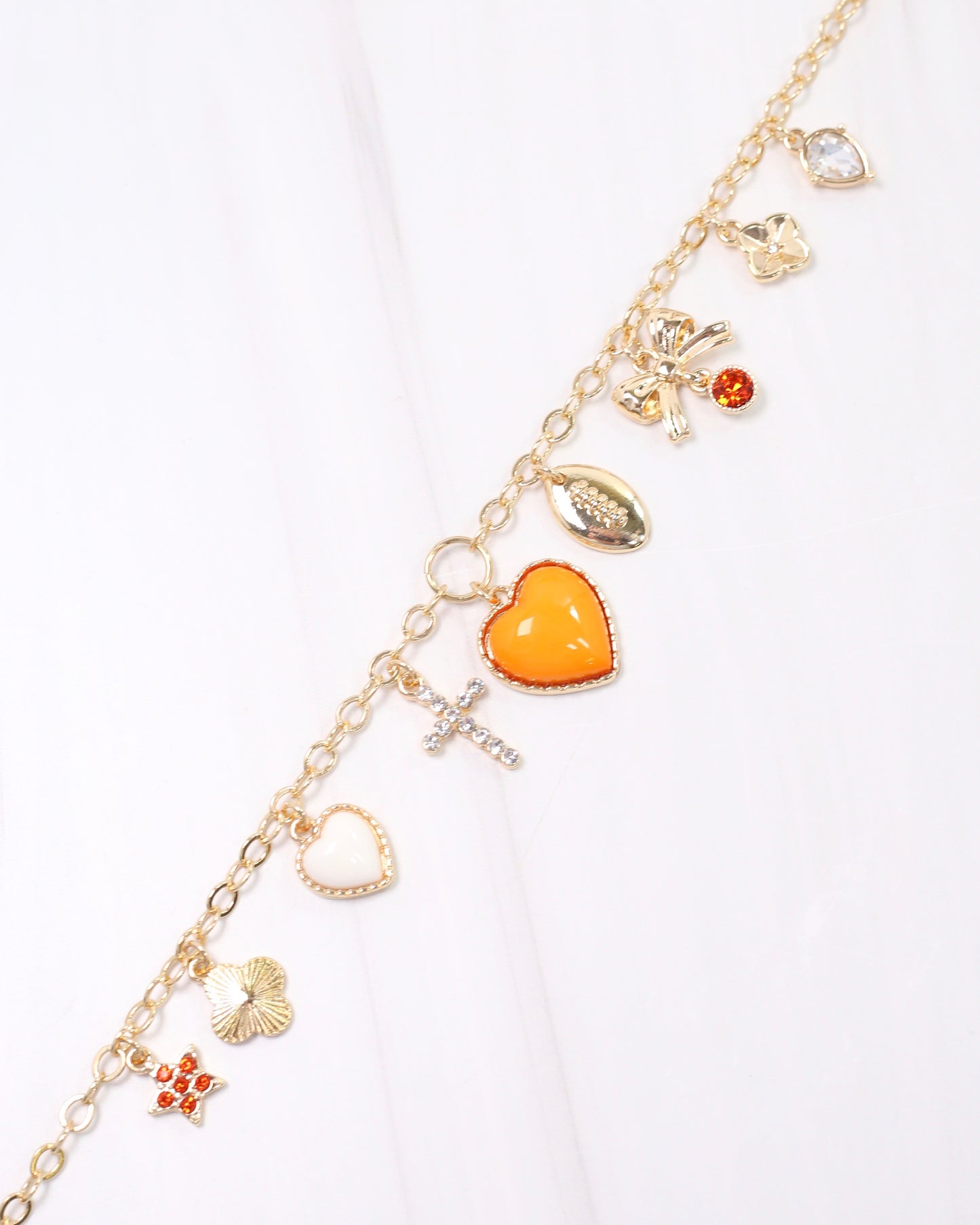 Add a stylish touch to your gameday look with the Avery Bag Chain in Orange and White. This charming accessory pairs beautifully with our Serafina Scarf Chain for a layered, fashionable statement. Show your spirit effortlessly while keeping your bag on trend and uniquely yours.
