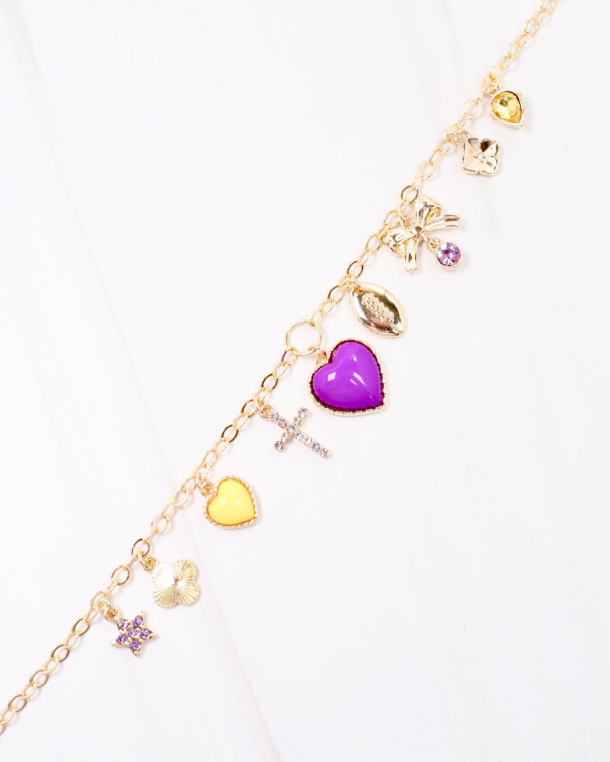 Add a stylish touch to your gameday look with the Avery Bag Chain in Purple and Orange. This charming accessory pairs beautifully with our Serafina Scarf Chain for a layered, fashionable statement. Show your spirit effortlessly while keeping your bag on trend and uniquely yours.