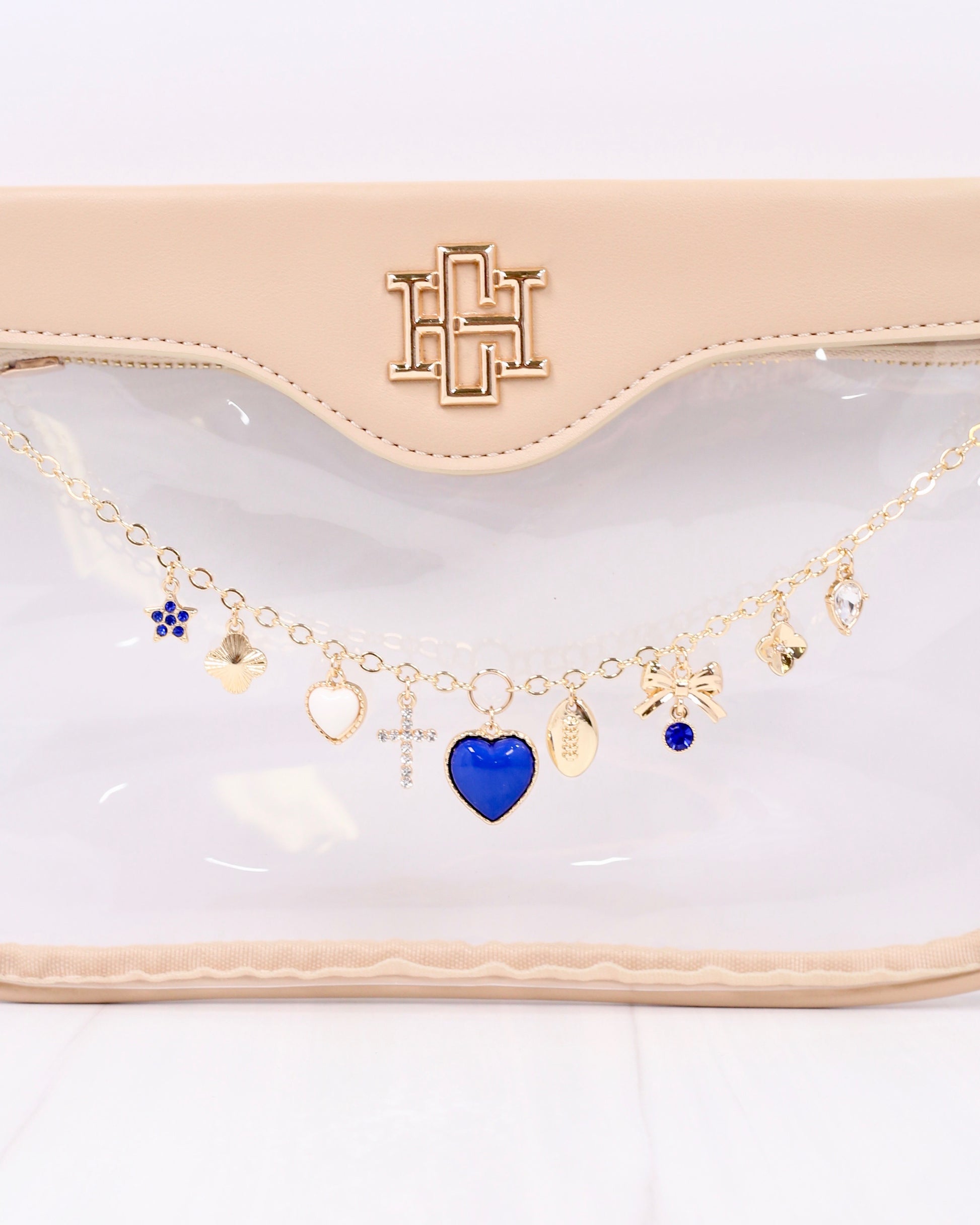 Add a stylish touch to your gameday look with the Avery Bag Chain in Royal Blue and White. This charming accessory pairs beautifully with our Serafina Scarf Chain for a layered, fashionable statement. Show your spirit effortlessly while keeping your bag on trend and uniquely yours.