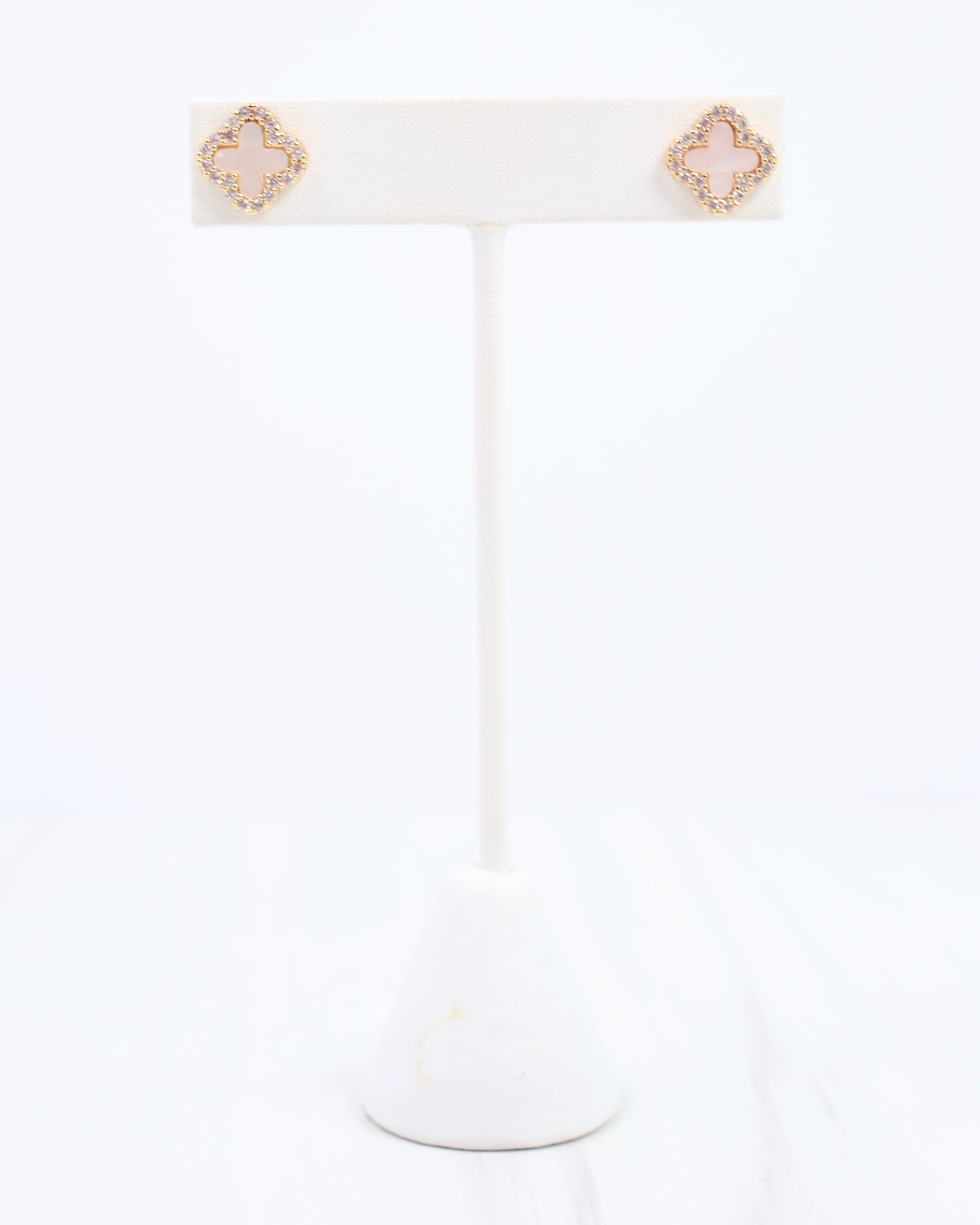 Bisbee CZ Clover Stud Earring Mother of Pearl