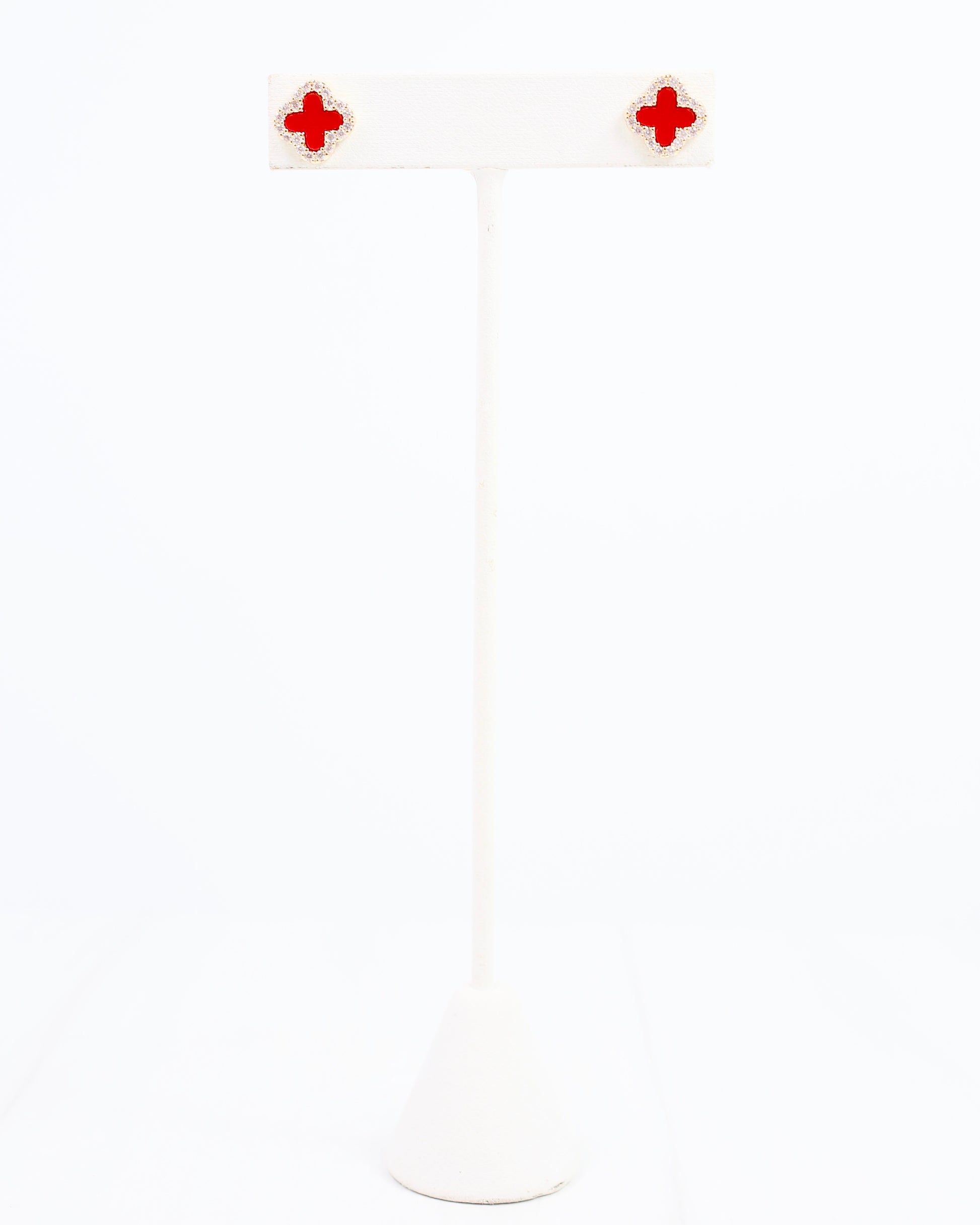 Add a pop of playful charm with the Bisbee CZ Clover Stud Earrings in vibrant red. These gold-dipped studs feature a bold red enamel clover, sparkling with a delicate trim of cubic zirconia for just the right amount of shine. Perfect for brightening any outfit with a touch of fun and elegance!