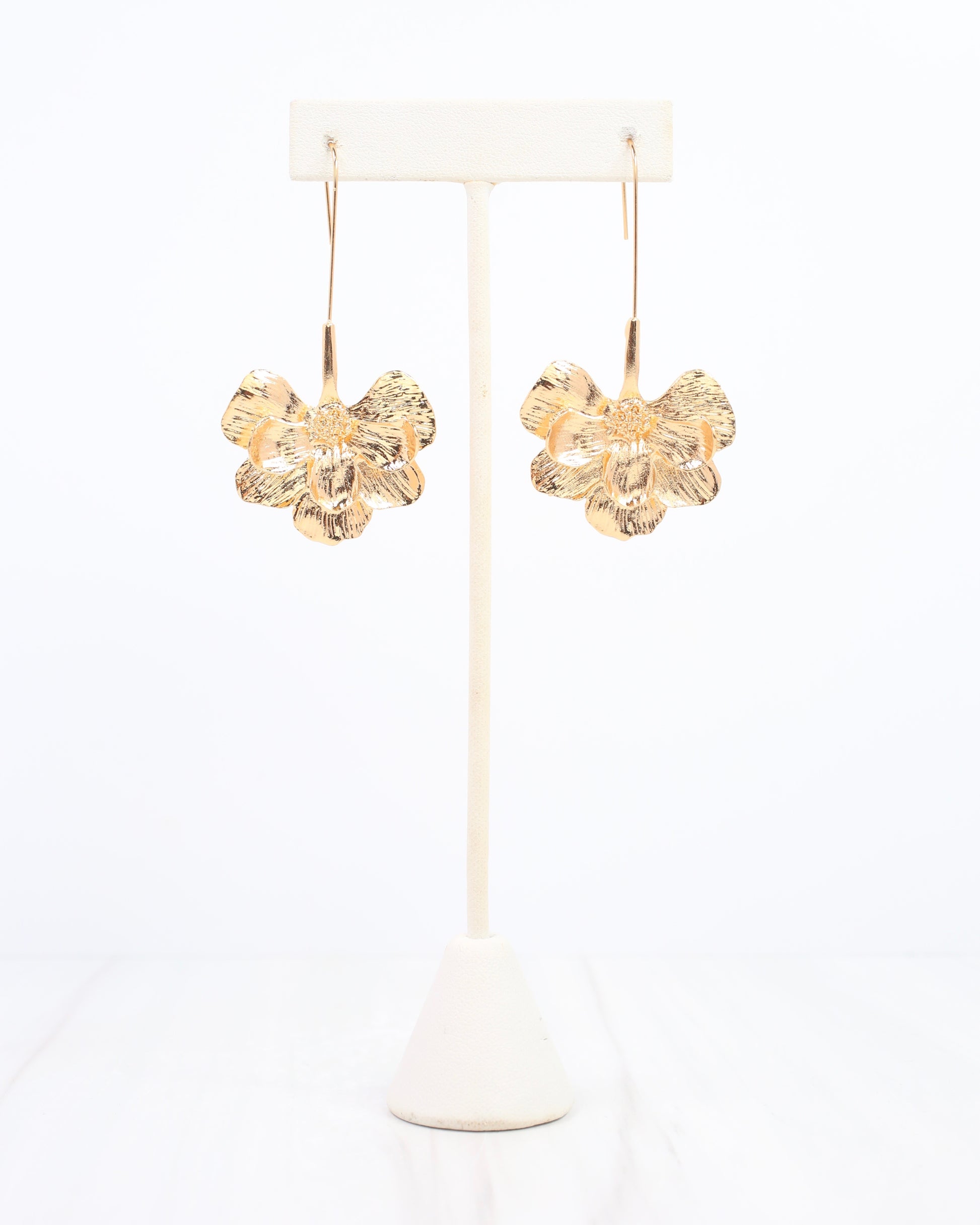 Add a touch of charm with the Blossom Hook Earring in Gold. Featuring a shiny gold finish and delicate flower petal details, these earrings are both sweet and eye-catching. Perfect for adding a playful yet elegant statement to any outfit.
