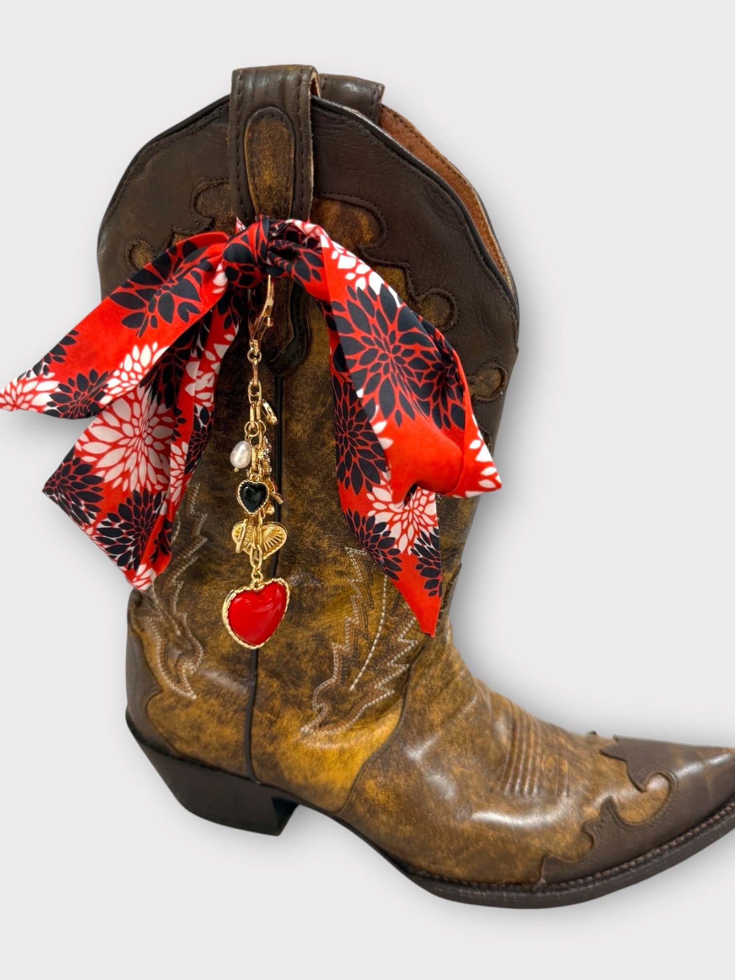 Elevate your gameday style with the Boot Bundle Red and Black Stripe. This chic set includes scarves and a bag charm designed to perfectly accessorize your boots, adding a trendy and spirited touch. Create the cutest, most fashionable look that stands out whether you're cheering from the sidelines or out on the town.