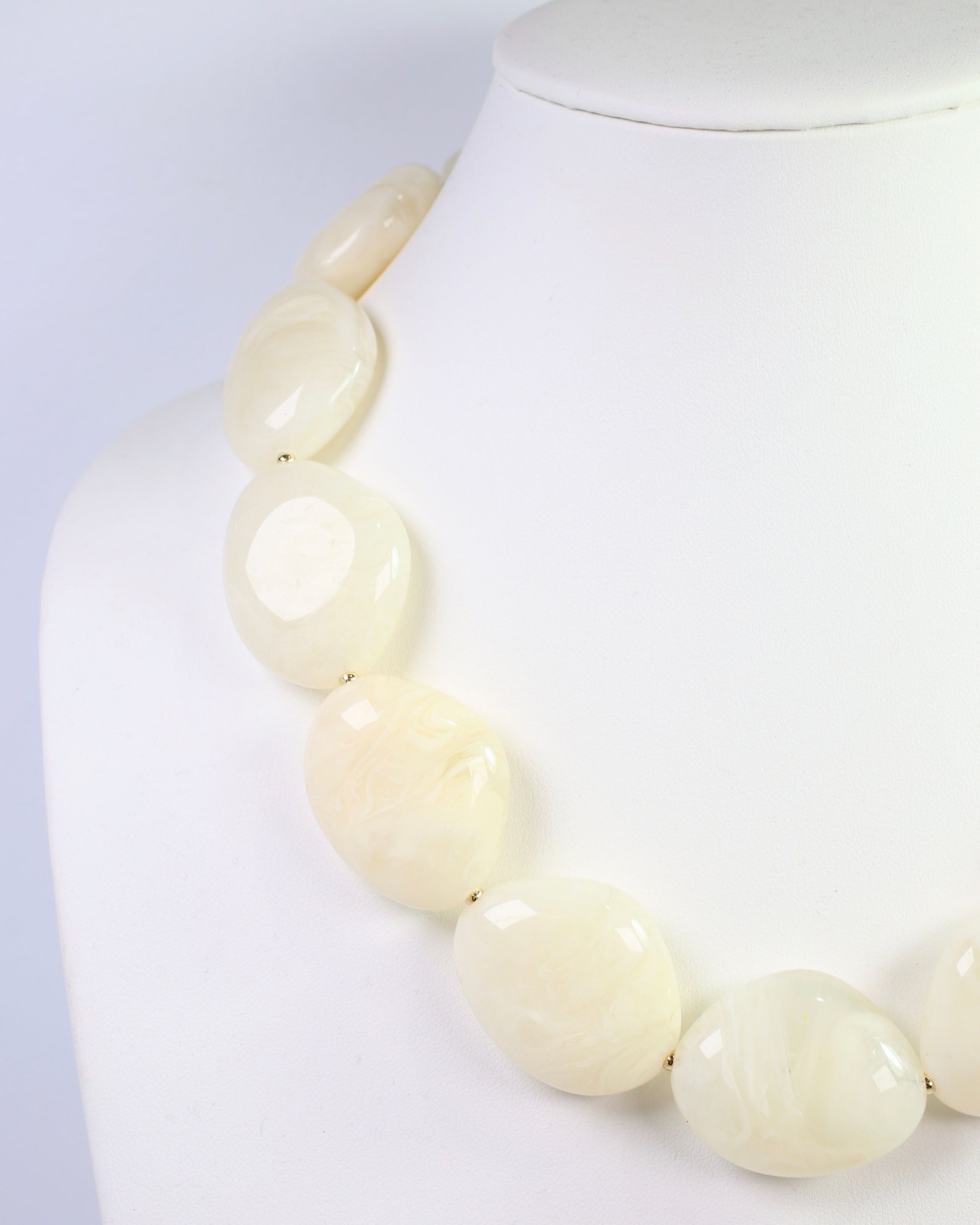 The Bowlie Chunky Marble Necklace makes a bold statement with its striking natural marble elements. Each piece showcases unique veining and organic patterns, ensuring no two necklaces are exactly alike. The substantial weight and texture add visual interest to any outfit, from casual basics to elevated looks. This eye-catching accessory brings an artistic touch and modern edge to your jewelry collection.