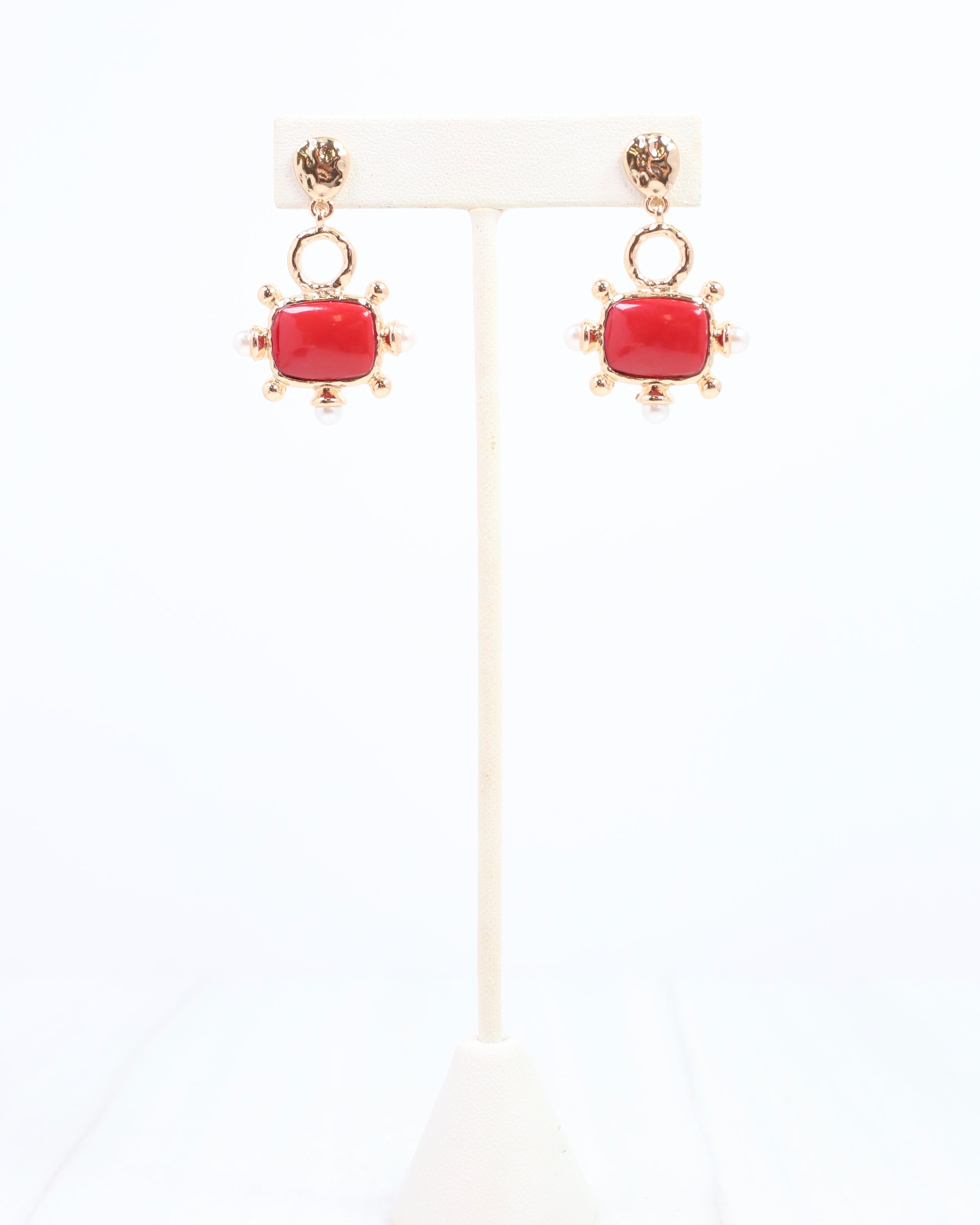 Elevate your look with the Buena Vista Stone and Pearl Drop Earring in vibrant red. These lightweight earrings combine classic pearls with a bold pop of color, offering an elegant yet fashionable statement. Perfect for adding a touch of sophistication and luxury to any outfit without feeling heavy.