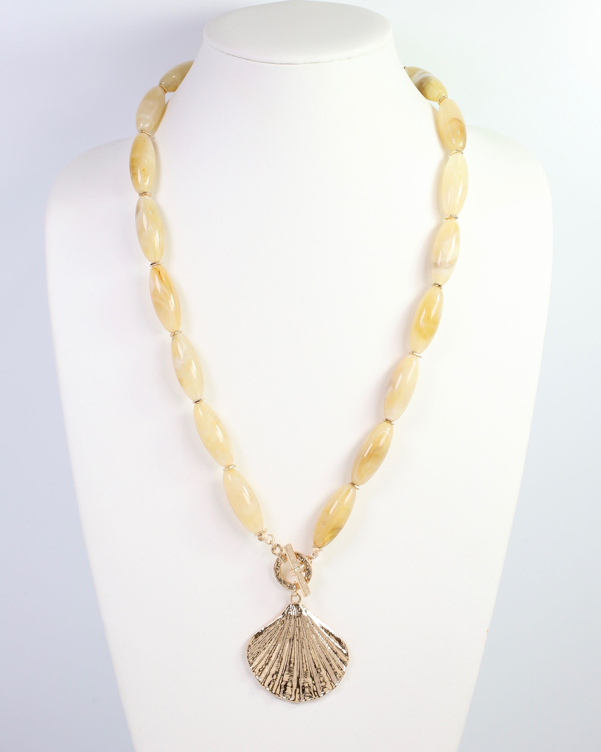 The Cambridge Stone Beaded Necklace with Shell brings understated luxury to your jewelry box. Featuring natural stone beads complemented by a striking shell charm, this piece captures the essence of coastal-inspired fashion. Its versatile design works beautifully as a standalone statement or layered with other necklaces, making it an essential addition for anyone seeking distinctive, nature-forward accessories.
