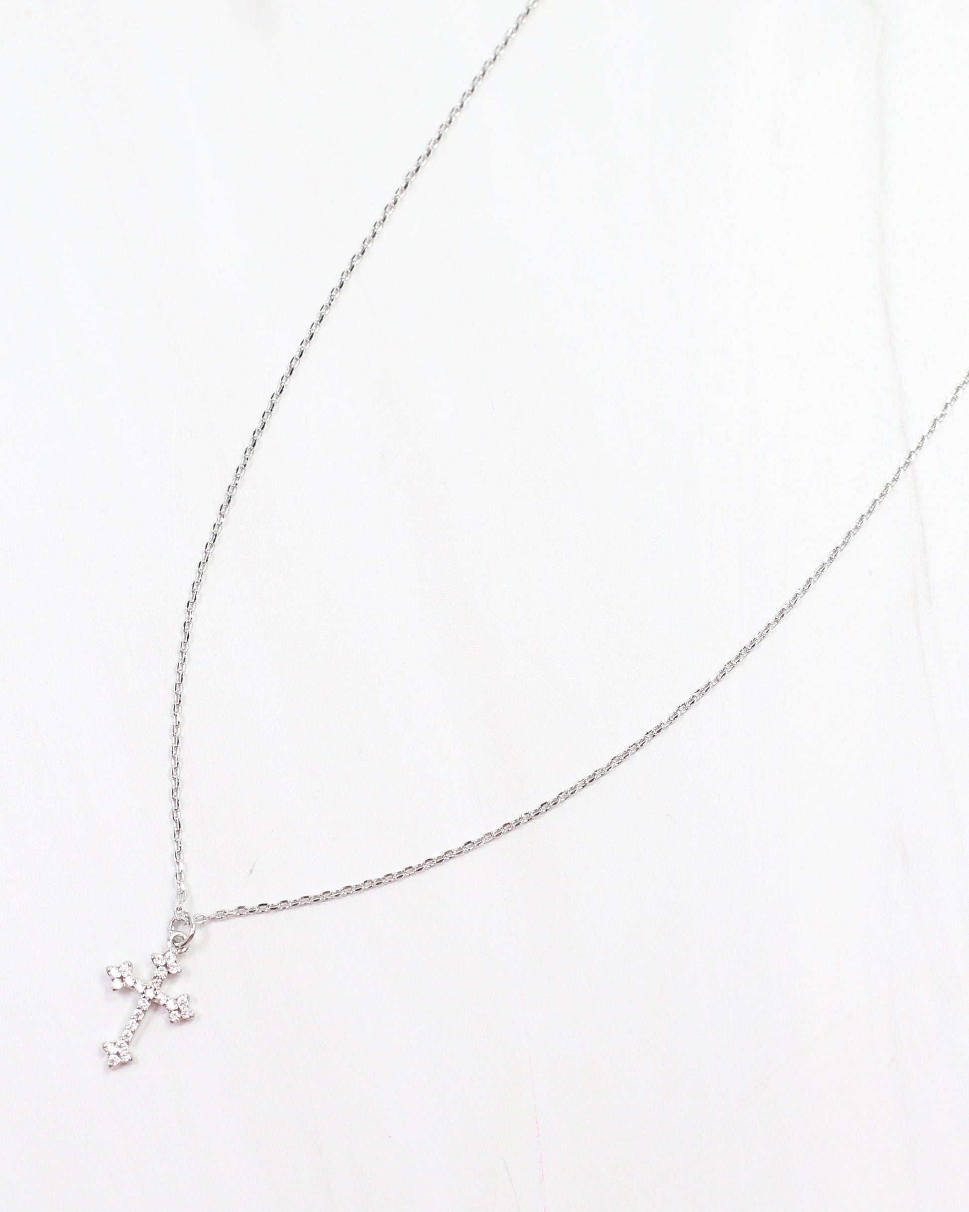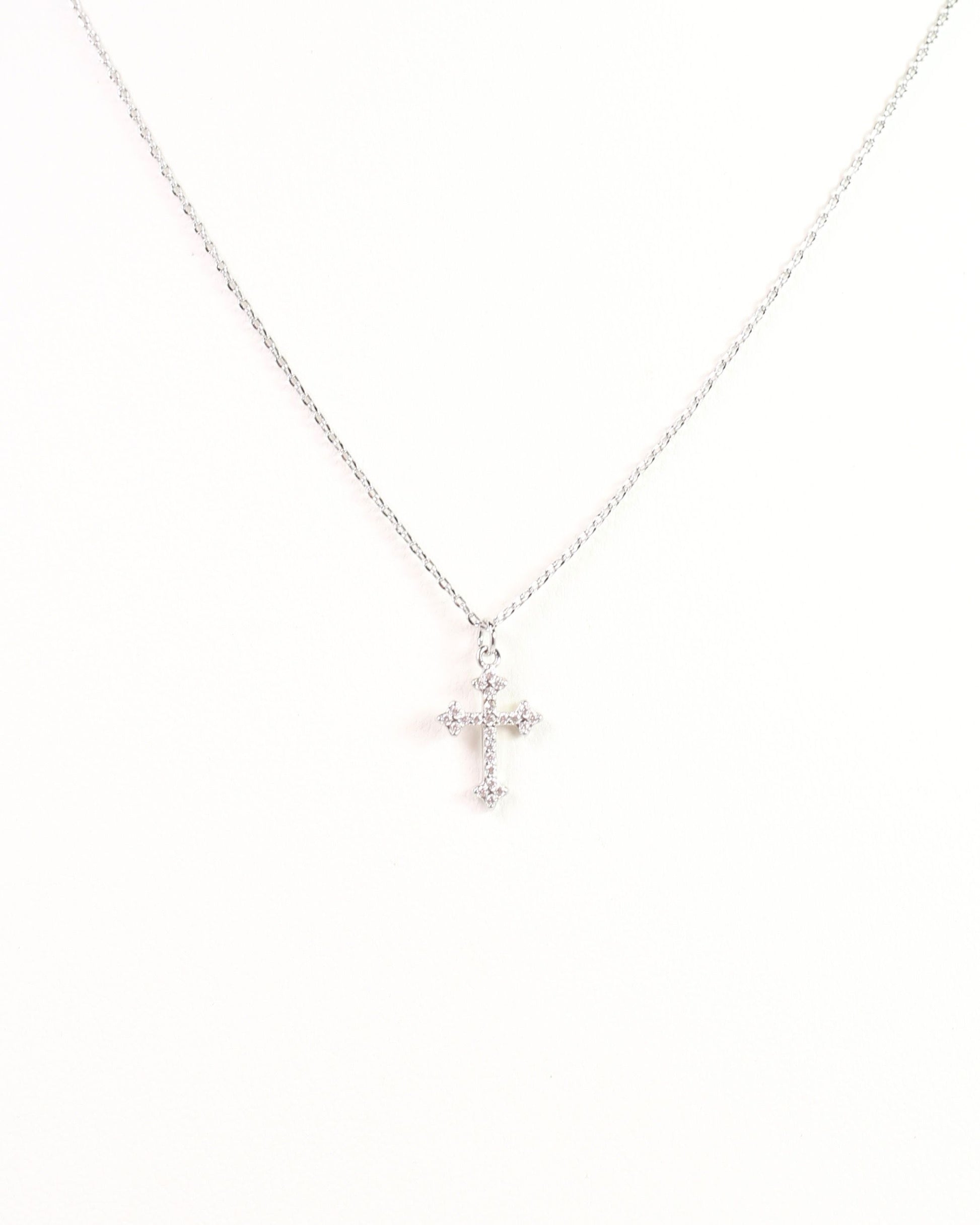 Add a touch of charm with the Camden Road Cross Necklace in Silver. Featuring a delicate gold-dipped brass chain and a sparkling pave old world cross, this playful piece effortlessly blends vintage vibes with modern style.