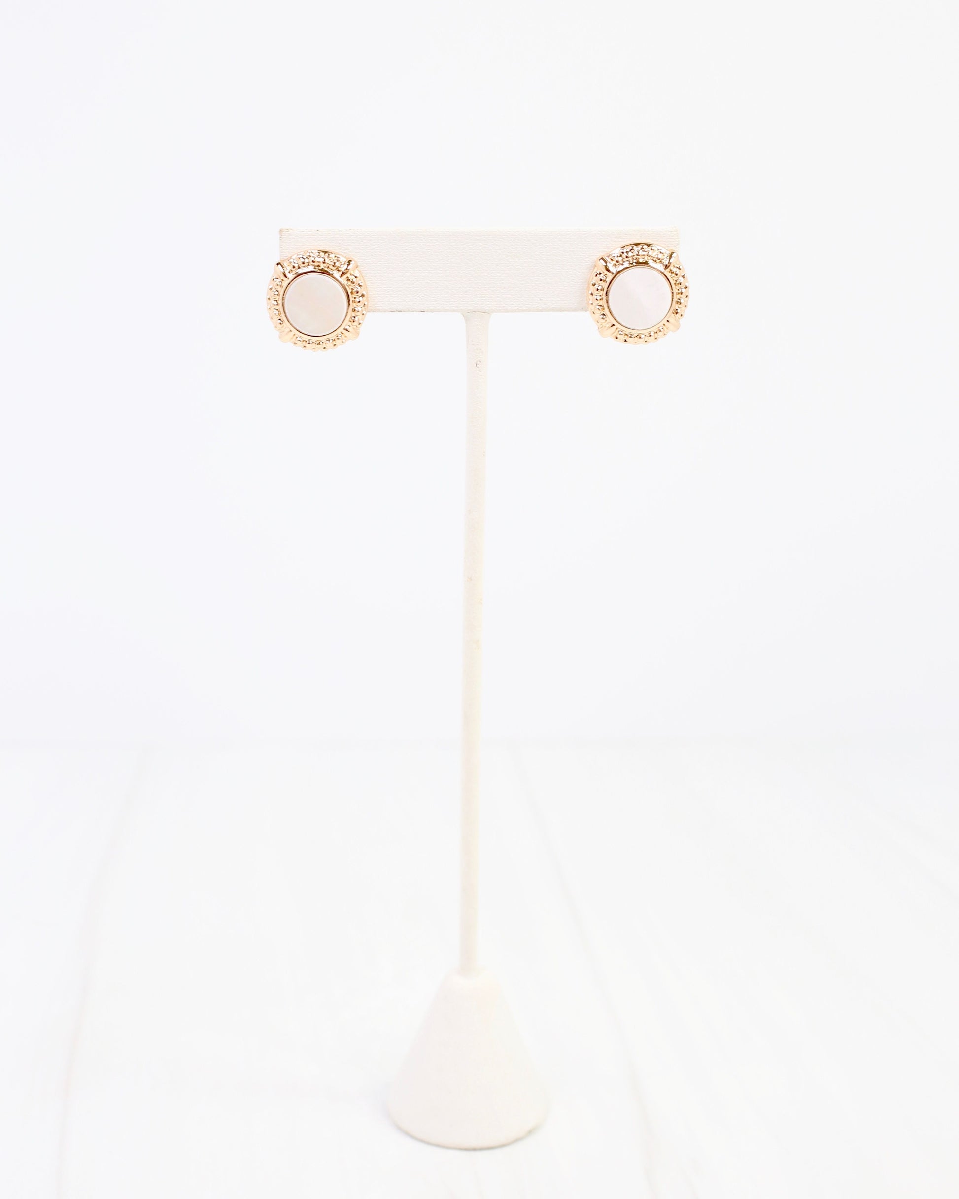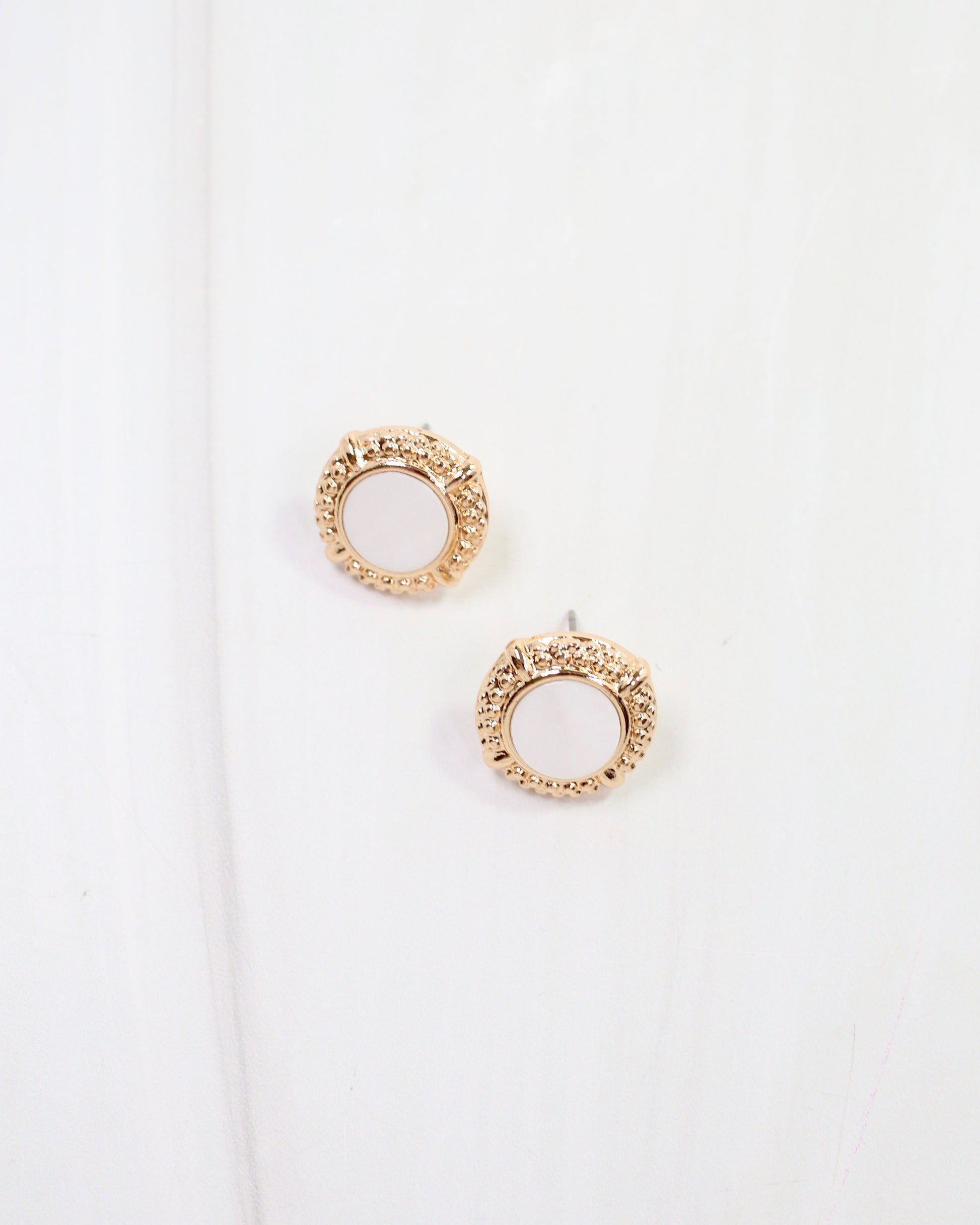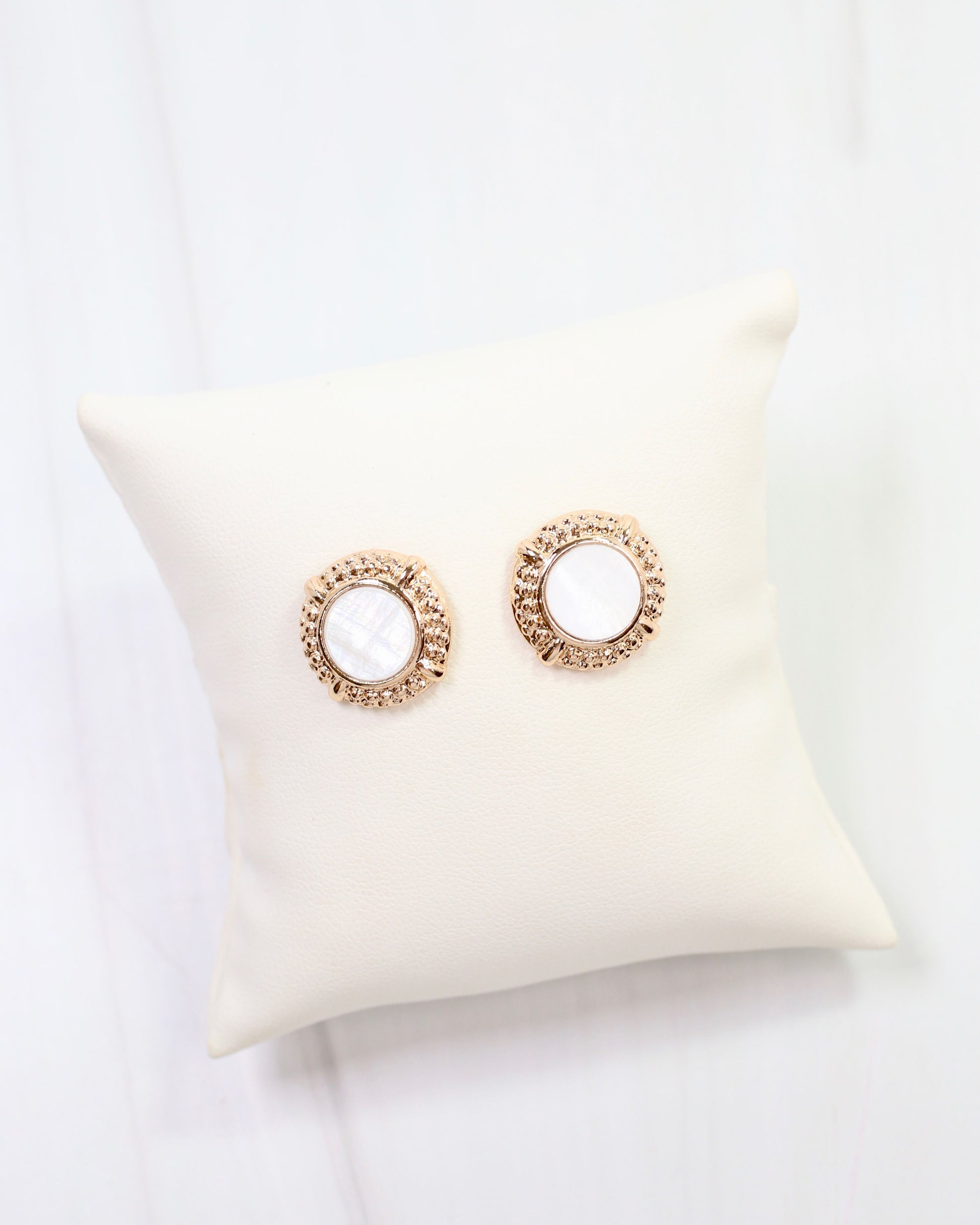 Make a chic statement with the Carbondale Stud Earrings, showcasing a luminous mother-of-pearl center accented by refined gold trim. These fashion-forward studs effortlessly combine timeless beauty with contemporary edge.