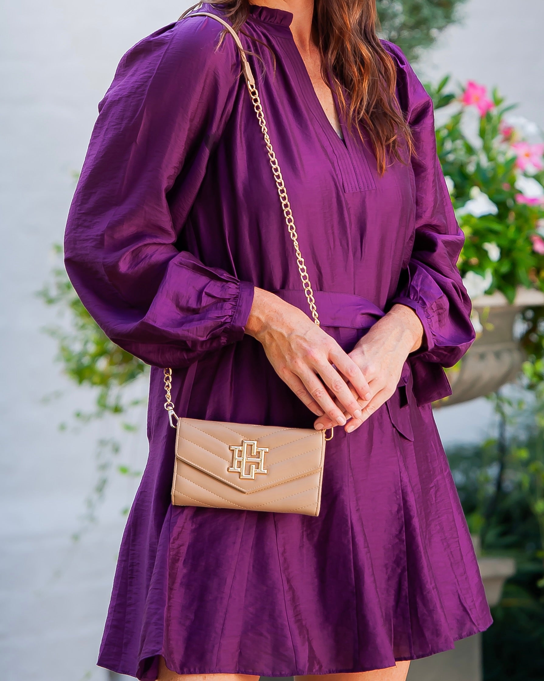 This playful wallet on chain doubles as a chic clutch with a removable chain for versatile wear. It boasts two compartments and credit card slots to keep your essentials organized. Big enough to fit your iPhone, it’s the perfect easy-to-grab bag for a night out or to toss inside your tote without any fuss.