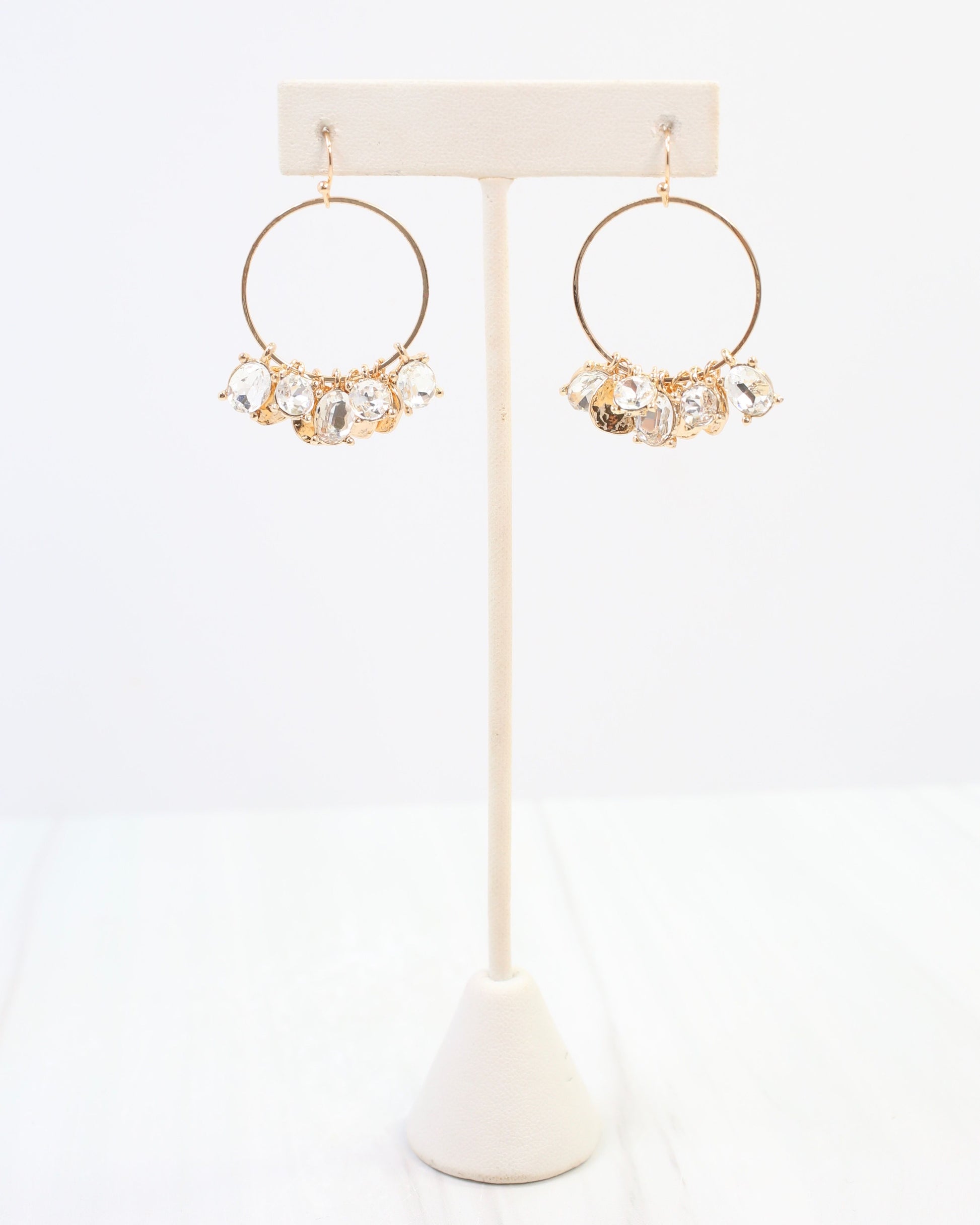 Add sparkle to your holiday look with the Carrolton Charm Earring in Clear. These circular hoop earrings feature dangling charms and clear stones for a stylish, shimmering effect.