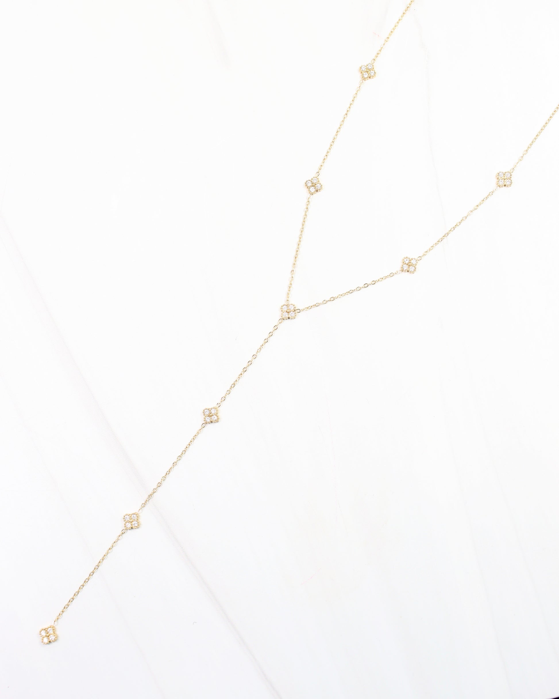 Add a touch of sparkle with the Charlene Clover Necklace Gold! Featuring delicate crystal clovers on a charming Y-shaped chain, this necklace brings a classic yet playful elegance to any outfit. Perfect for layering or wearing solo, it’s your new go-to piece for adding shimmer and style with a fun twist.
