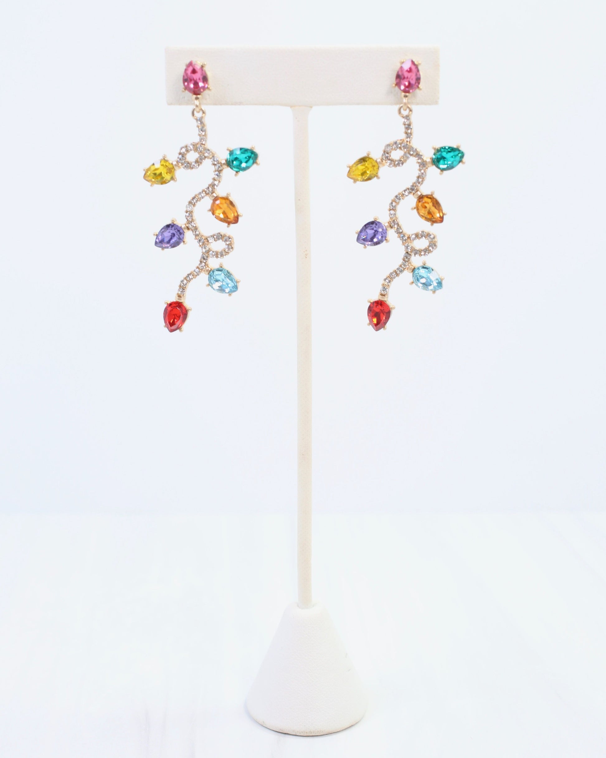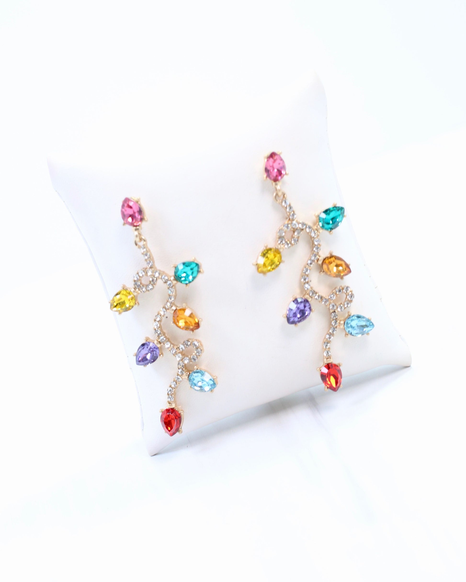 Shine bright this holiday season with the Christmas CZ Lights Earrings in multicolor. Crafted to resemble festive Christmas lights, these earrings feature dazzling crystals that add vibrant color and sparkle to any outfit. Perfect for making a stylish and cheerful statement at your seasonal celebrations.