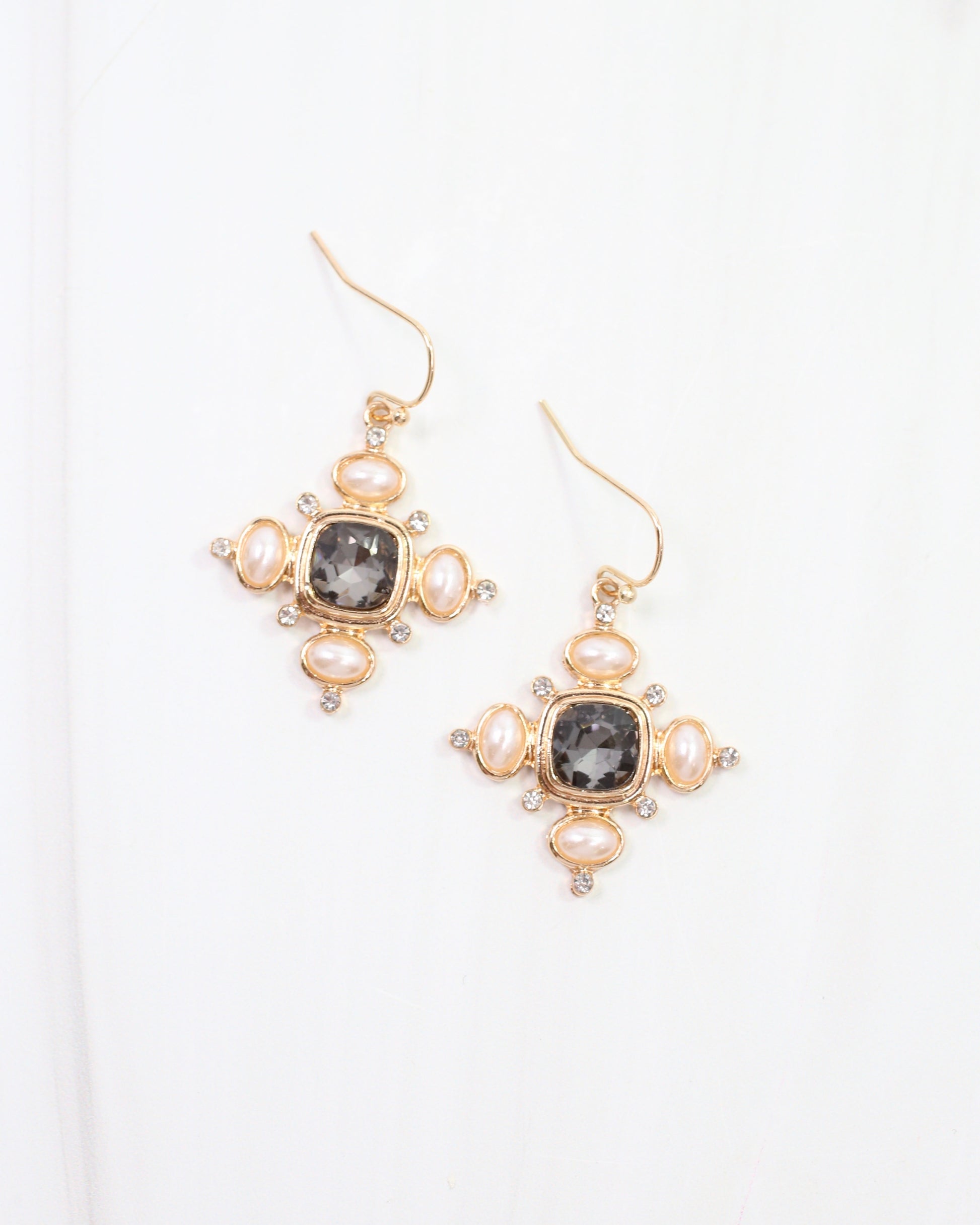 Elevate your look with these elegant drop earrings featuring a sparkling crystal center surrounded by delicate pearls. Their timeless design adds a touch of sophistication to any outfit, perfect for both everyday wear and special occasions. Lightweight and stylish, they effortlessly blend classic charm with modern finesse.