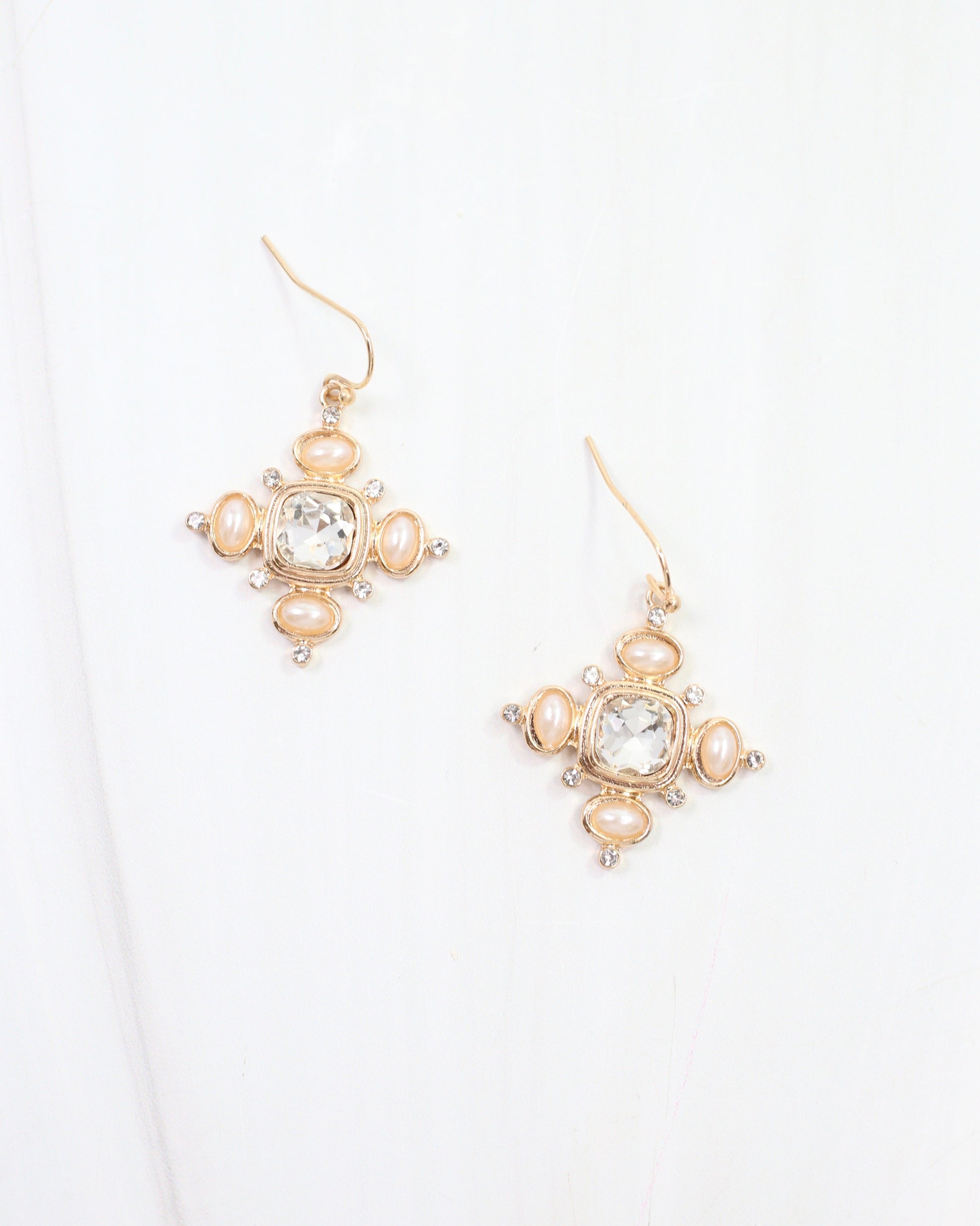 Elevate your look with these elegant drop earrings featuring a sparkling crystal center surrounded by delicate pearls. Their timeless design adds a touch of sophistication to any outfit, perfect for both everyday wear and special occasions. Lightweight and stylish, they effortlessly blend classic charm with modern finesse.