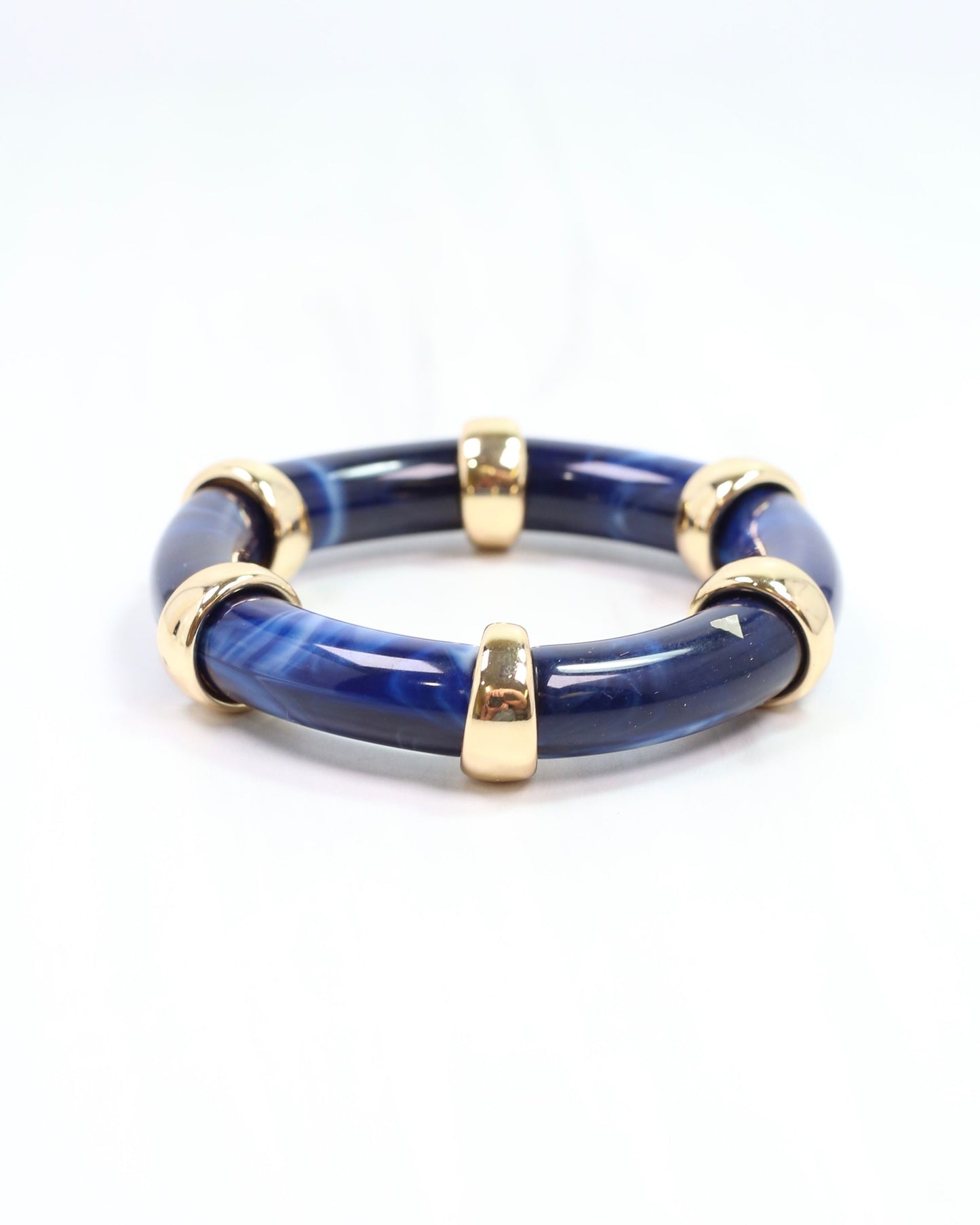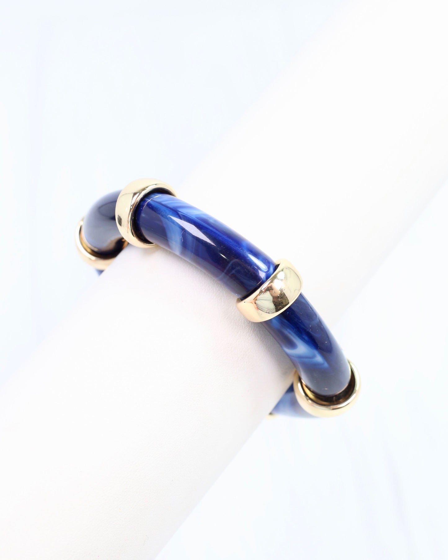 Add a pop of playful charm with the Corbin Stretch Bracelet in vibrant blue! This acetate tube bracelet features shiny gold stations that catch the light beautifully. Its stretchy design ensures a comfy fit for most wrists, making it an easy and stylish accessory to brighten any outfit.