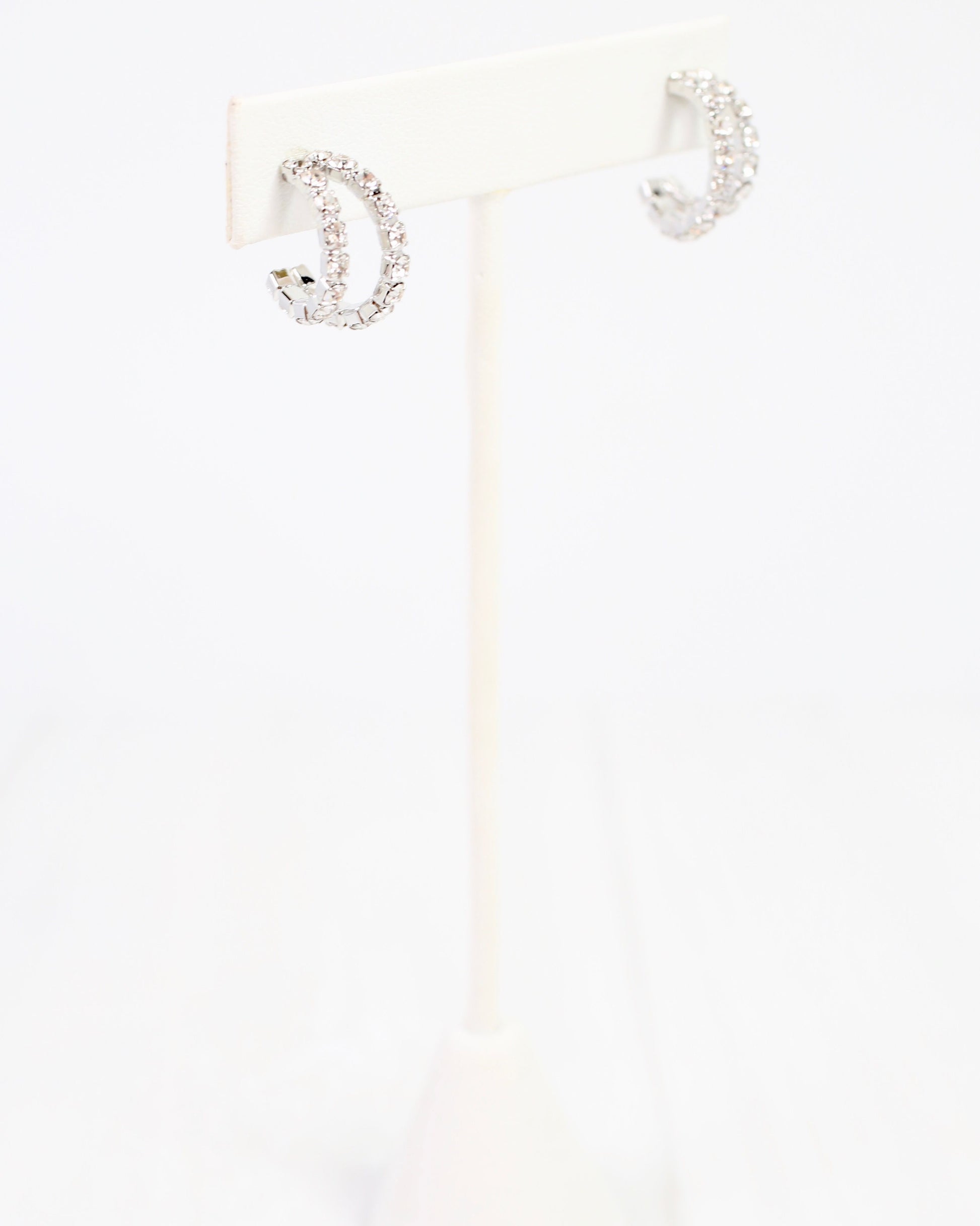 Elevate your style with the Crystal Rounded Double Hoop in Silver. Featuring two intertwined hoops adorned with shimmering cubic zirconia, these earrings catch the light beautifully for a sparkling, polished look. Perfect for adding a touch of glamour to any outfit, they combine timeless elegance with modern shine.