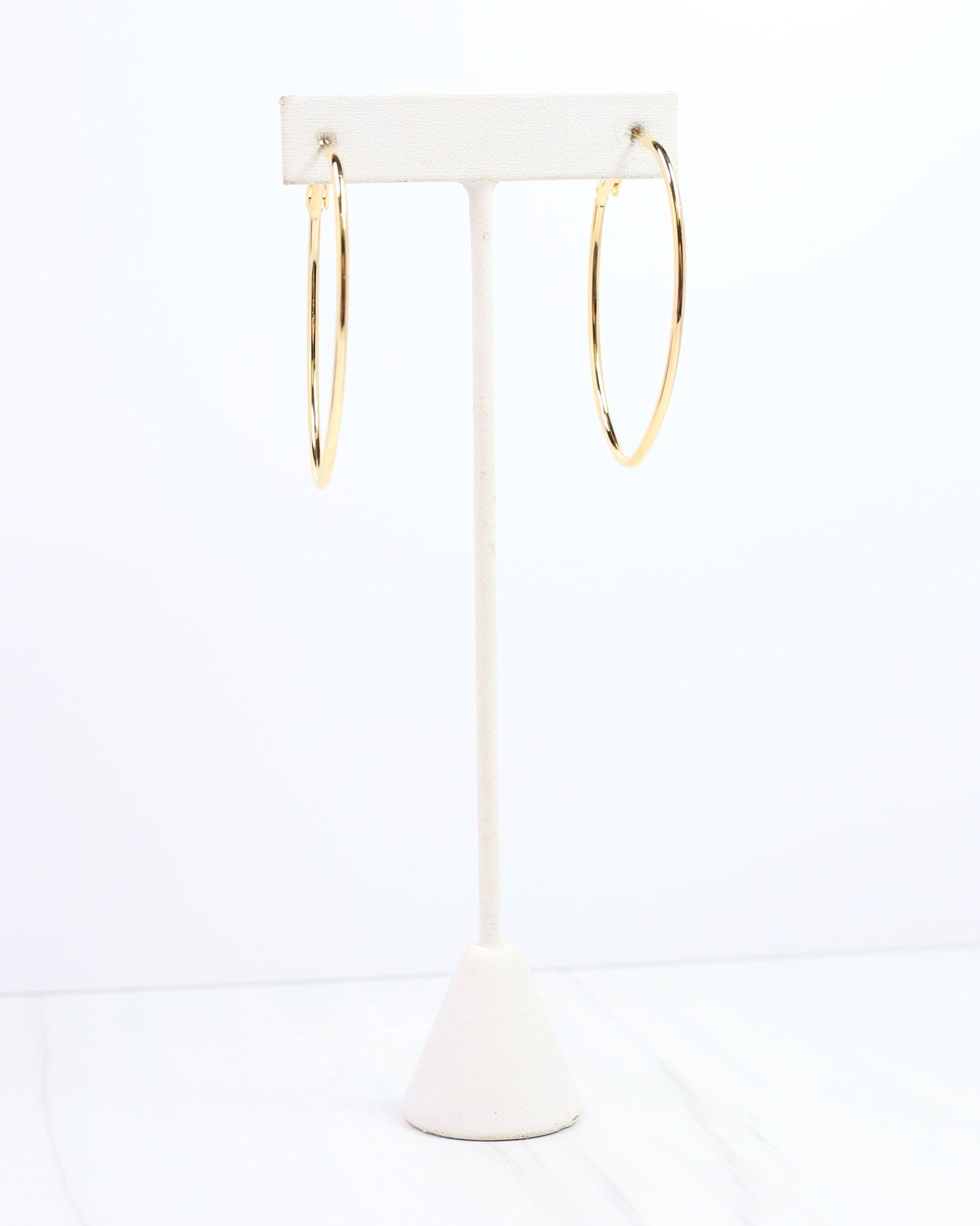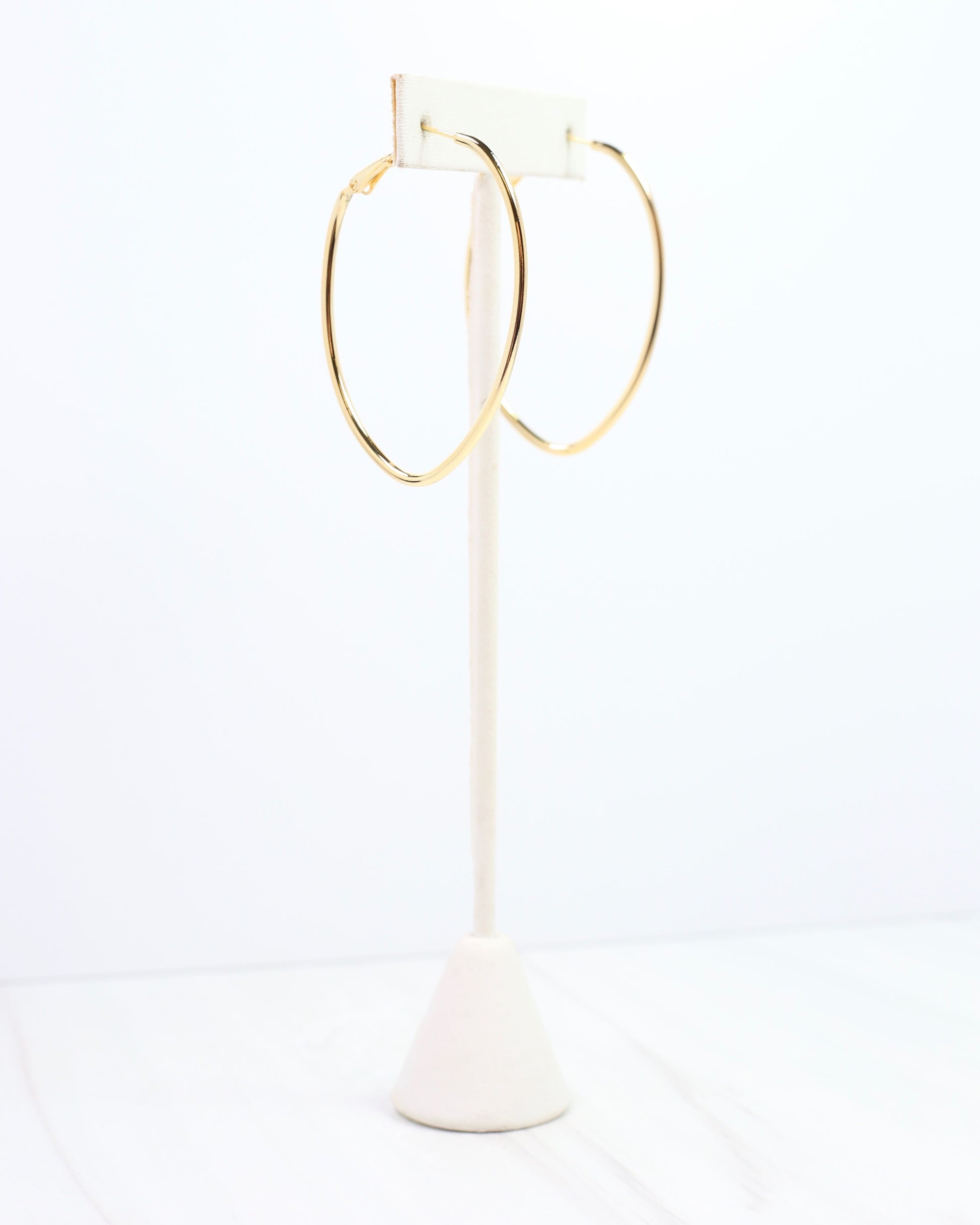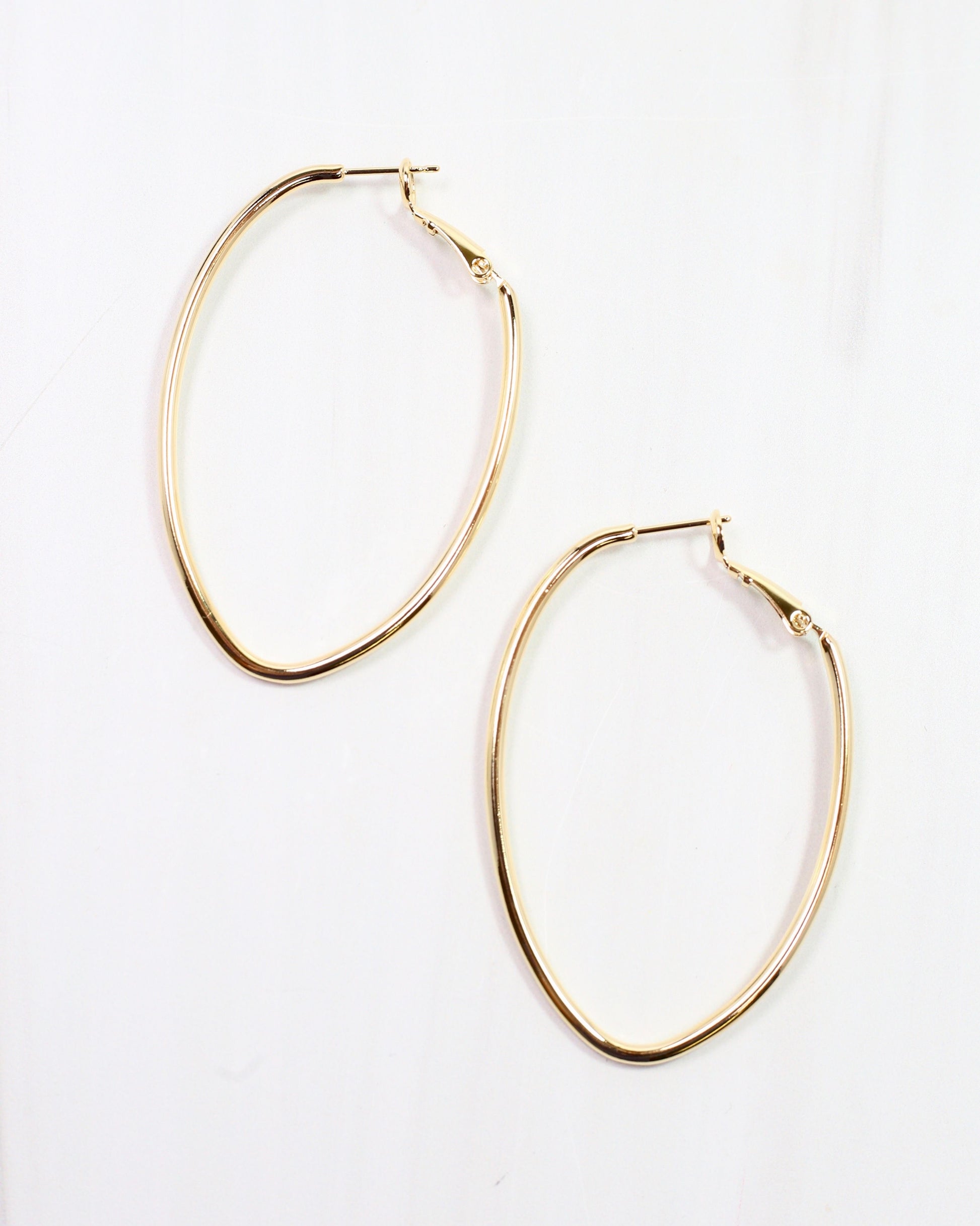 Brighten your look with the Daniiella Oval Hoop Gold! These shiny, thin oval hoops are crafted from brass and dipped in gold for a radiant finish. The secure latch back closure keeps them comfortably in place while adding a fun, playful vibe to your style.