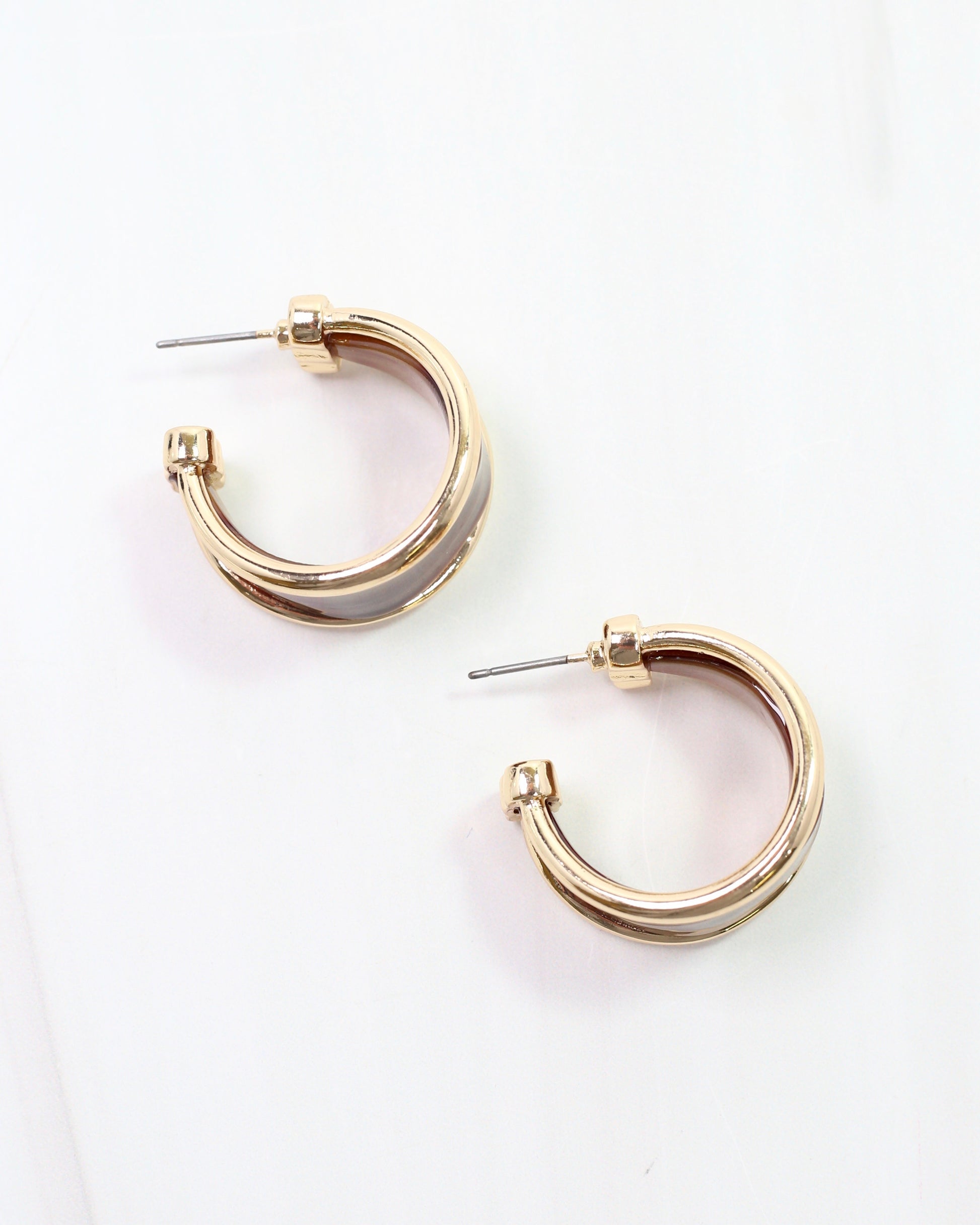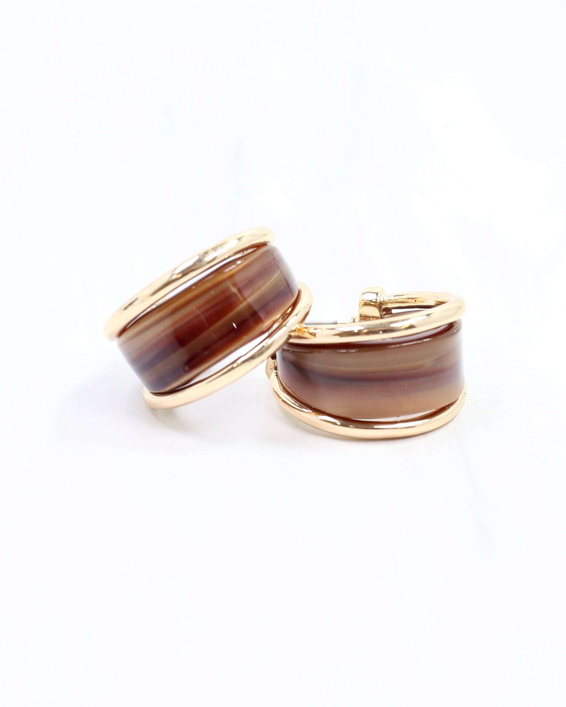Add a splash of autumn charm to your look with these Daphne Gold Trimmed Hoop Earrings. Lightweight and effortlessly stylish, their warm brown acetate and shiny gold accents blend with any outfit, making them your go-to for cozy fall vibes. Easy to wear, impossible to ignore!