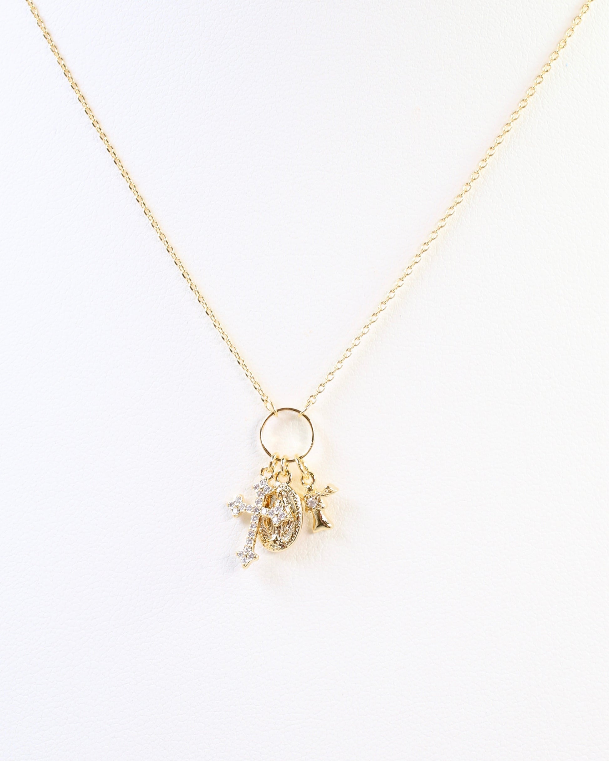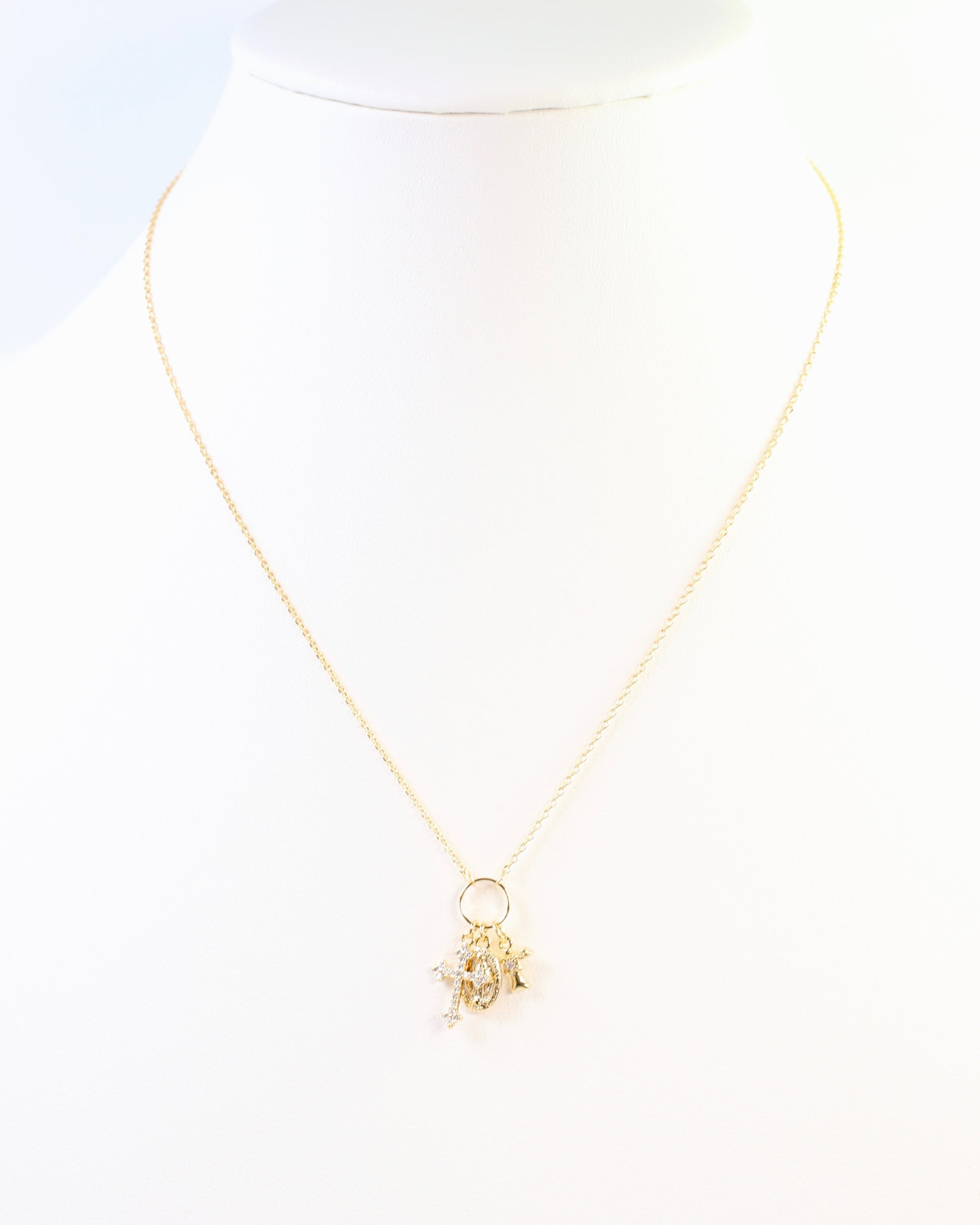 Elevate your style with the Dillard Charm Necklace Gold, featuring delicate ornate crosses and a graceful pendant. This finely crafted piece adds a touch of elegance and meaningful charm to any outfit, making it perfect for both everyday wear and special occasions. Its subtle design ensures it complements your look without overpowering, offering a timeless accessory that speaks to your unique taste.
