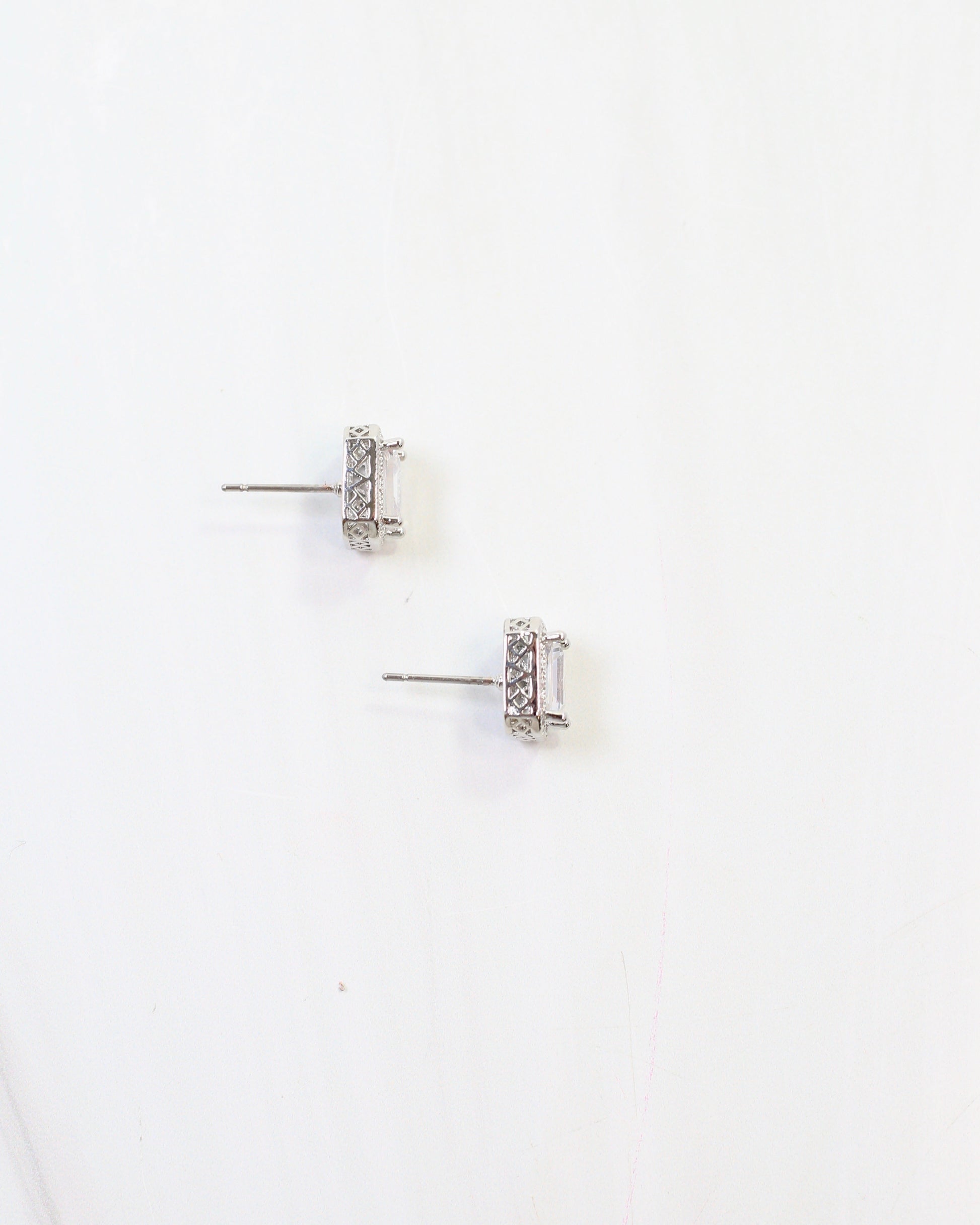 Elevate your style with the Effie Emerald Cut Crystal Stud Silver earrings. Featuring a stunning emerald-cut crystal centerpiece, framed by smaller dazzling CZ stones, these earrings add a touch of refined sparkle to any look. Perfect for both everyday elegance and special occasions, they bring timeless glamour with a modern twist.