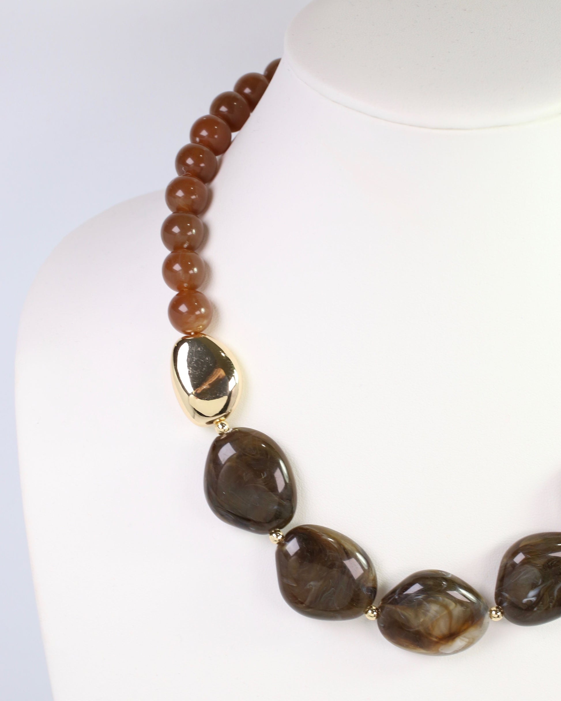 Warm and earthy, this brown stone beaded necklace brings natural elegance to your collection. The carefully selected beads create a refined aesthetic that pairs effortlessly with both casual and polished looks, making it a timeless staple for any wardrobe.