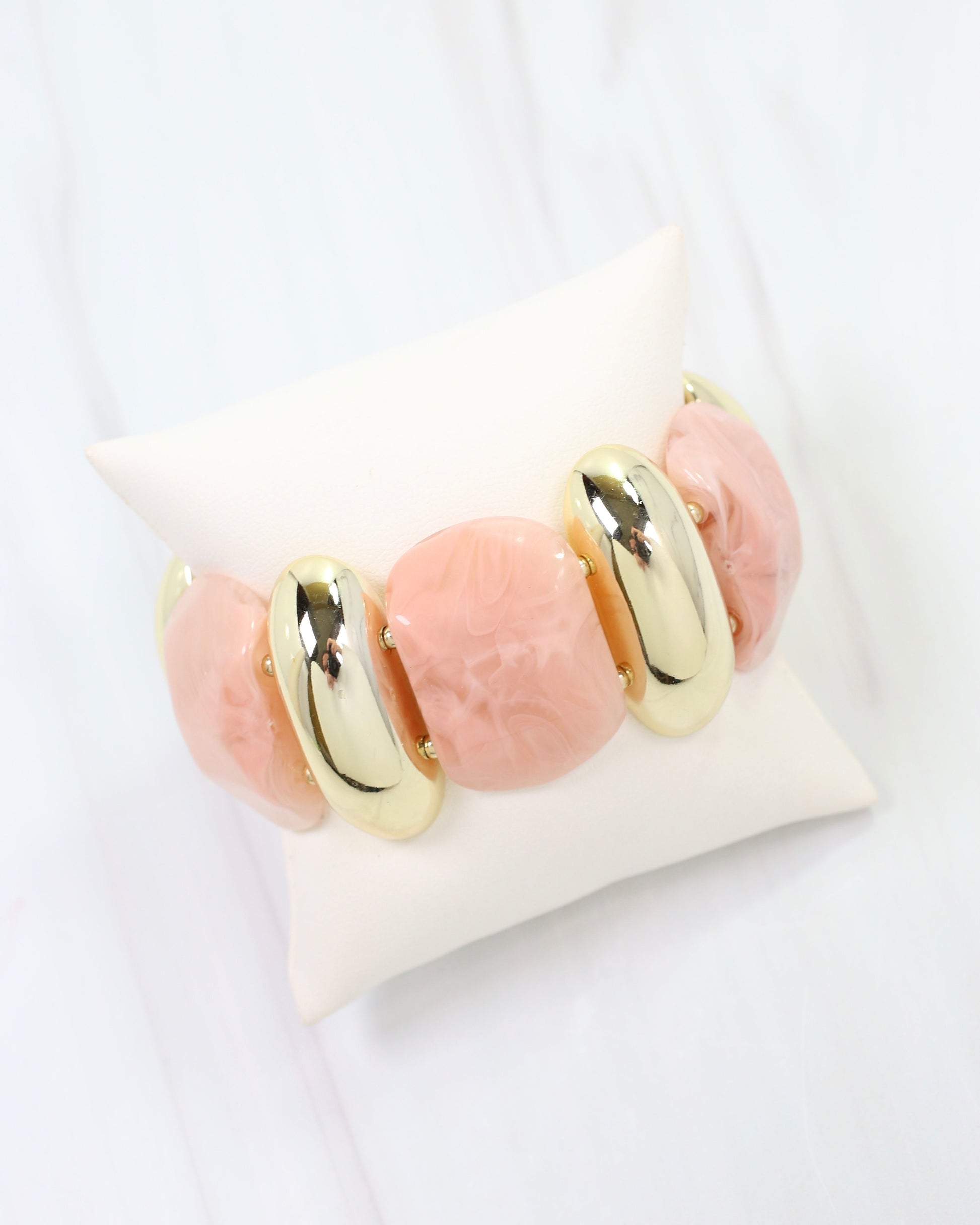 The Emporia Stretch Bracelet Blush features a refined blend of Blush-patterned and gold beads, strung on a flexible stretch band for an elegant yet comfortable fit. Its timeless design adds a subtle touch of sophistication to any outfit.