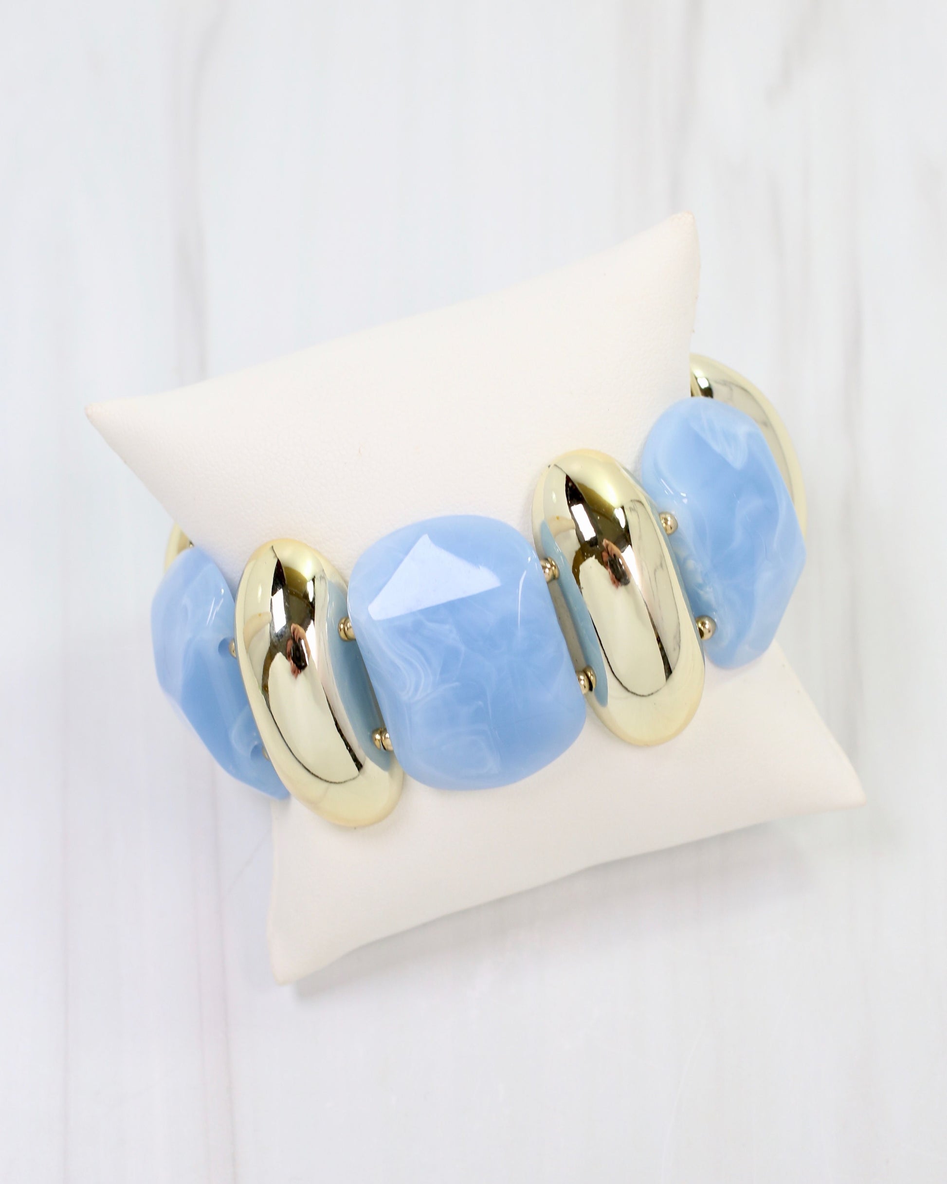 The Emporia Stretch Bracelet Dusty Blue features a refined blend of Dusty Blue-patterned and gold beads, strung on a flexible stretch band for an elegant yet comfortable fit. Its timeless design adds a subtle touch of sophistication to any outfit.