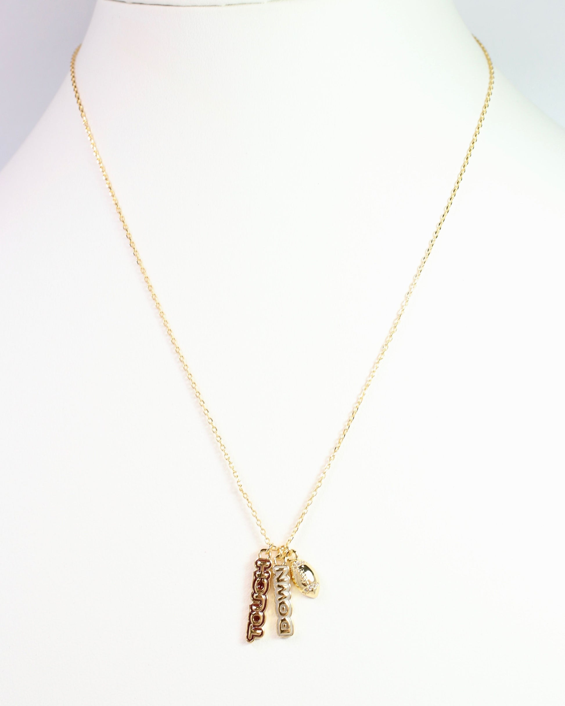 Celebrate your team spirit with this playful Enamel Touch Down Necklace! Featuring a vibrant Garnet and Gold enamel charm alongside a sparkling gold football adorned with CZ stones, all hanging from an 18K gold-dipped chain. It's the perfect accessory to show off your love for the game with a fun, stylish twist.
