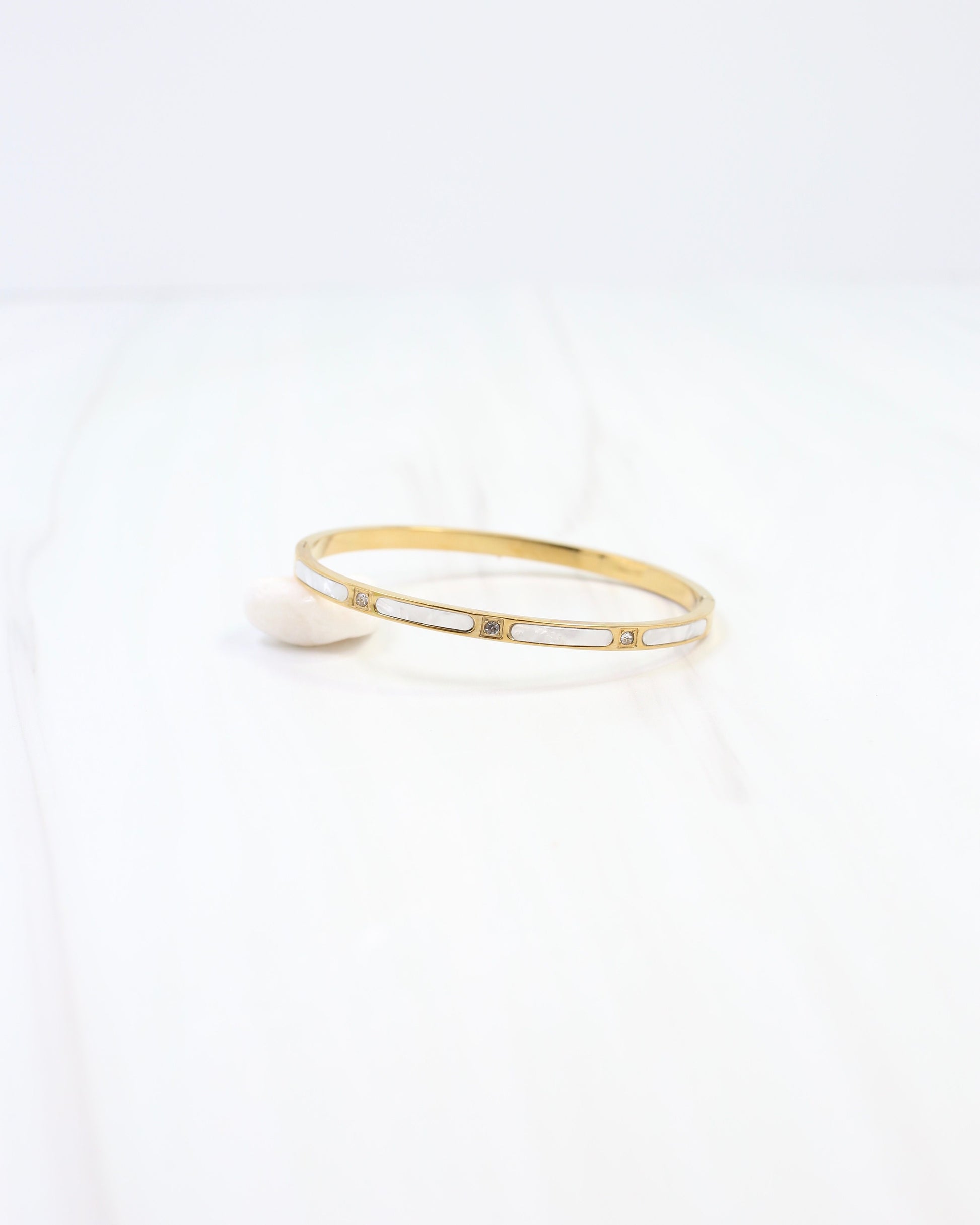 Fairhaven Shell CZ Bangle Bracelet Gold