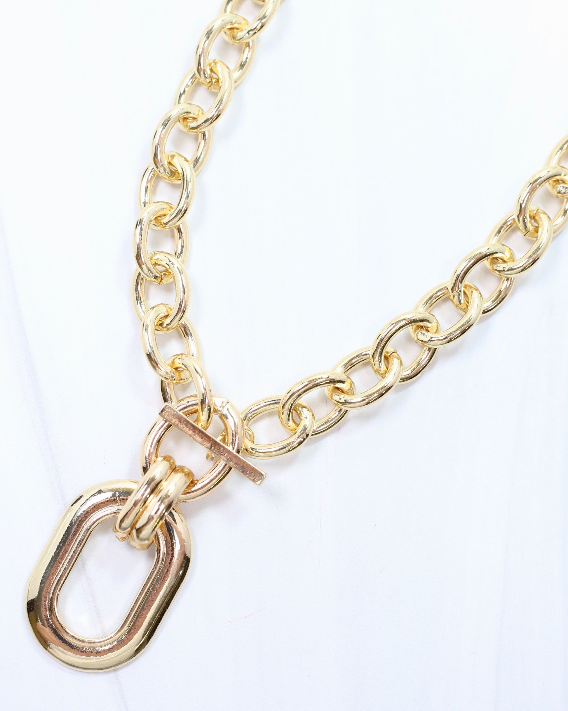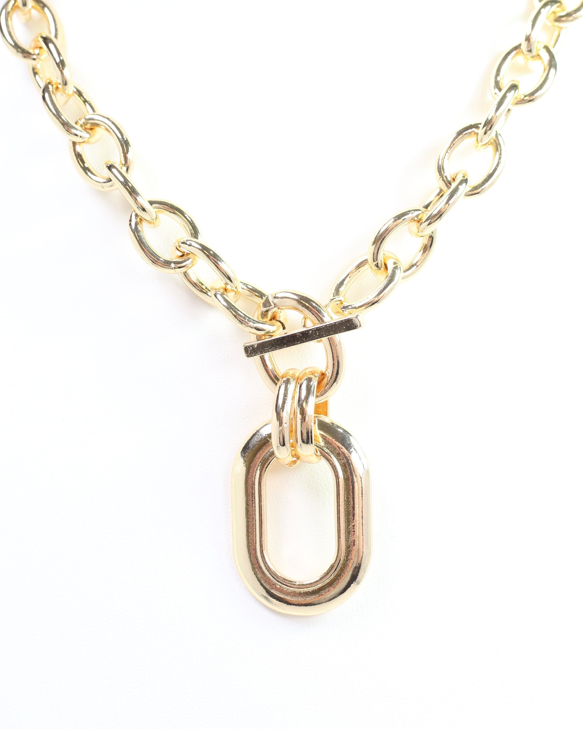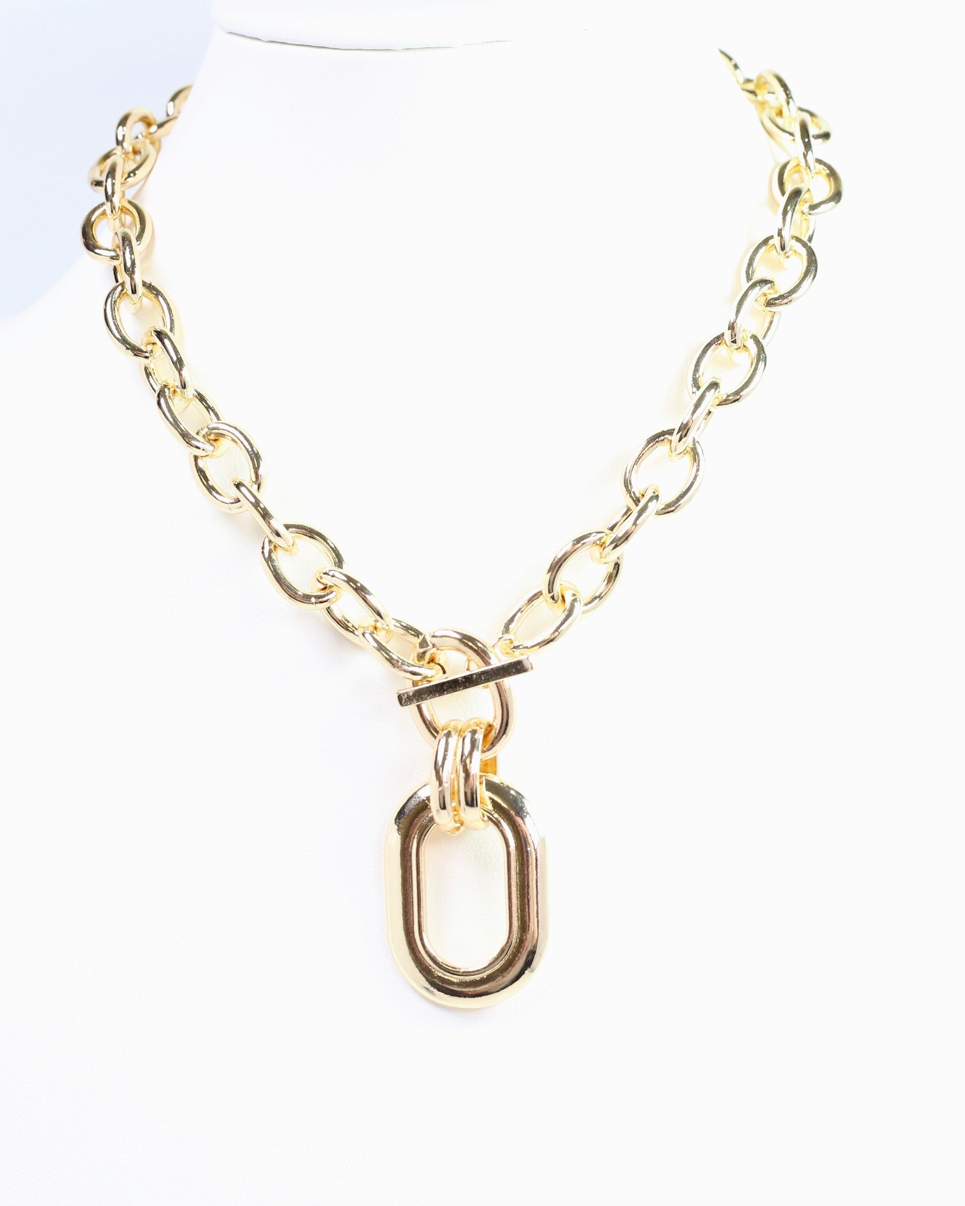 Shine bright with our Francey Gold Oval Pendant Necklace! This fun piece rocks chunky links, a bold oval pendant, and easy toggle closure. Add some golden sparkle to your day!