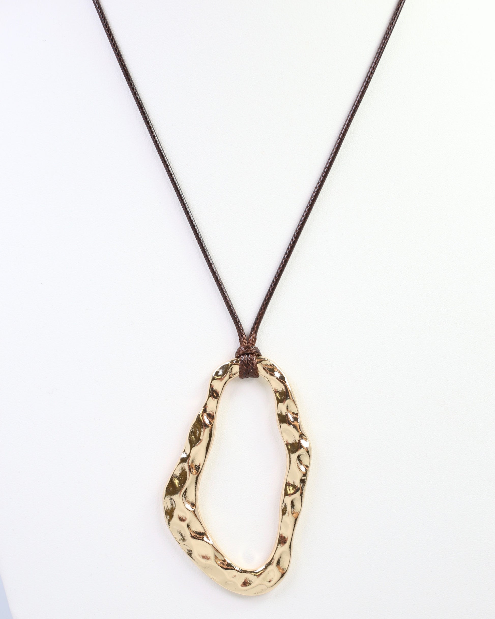 The Frankfort Corded Necklace features a sleek gold oval pendant and modern cord design. It adds elegant sophistication to any outfit and suits both day and night wear. Elevate your style effortlessly with this timeless piece.