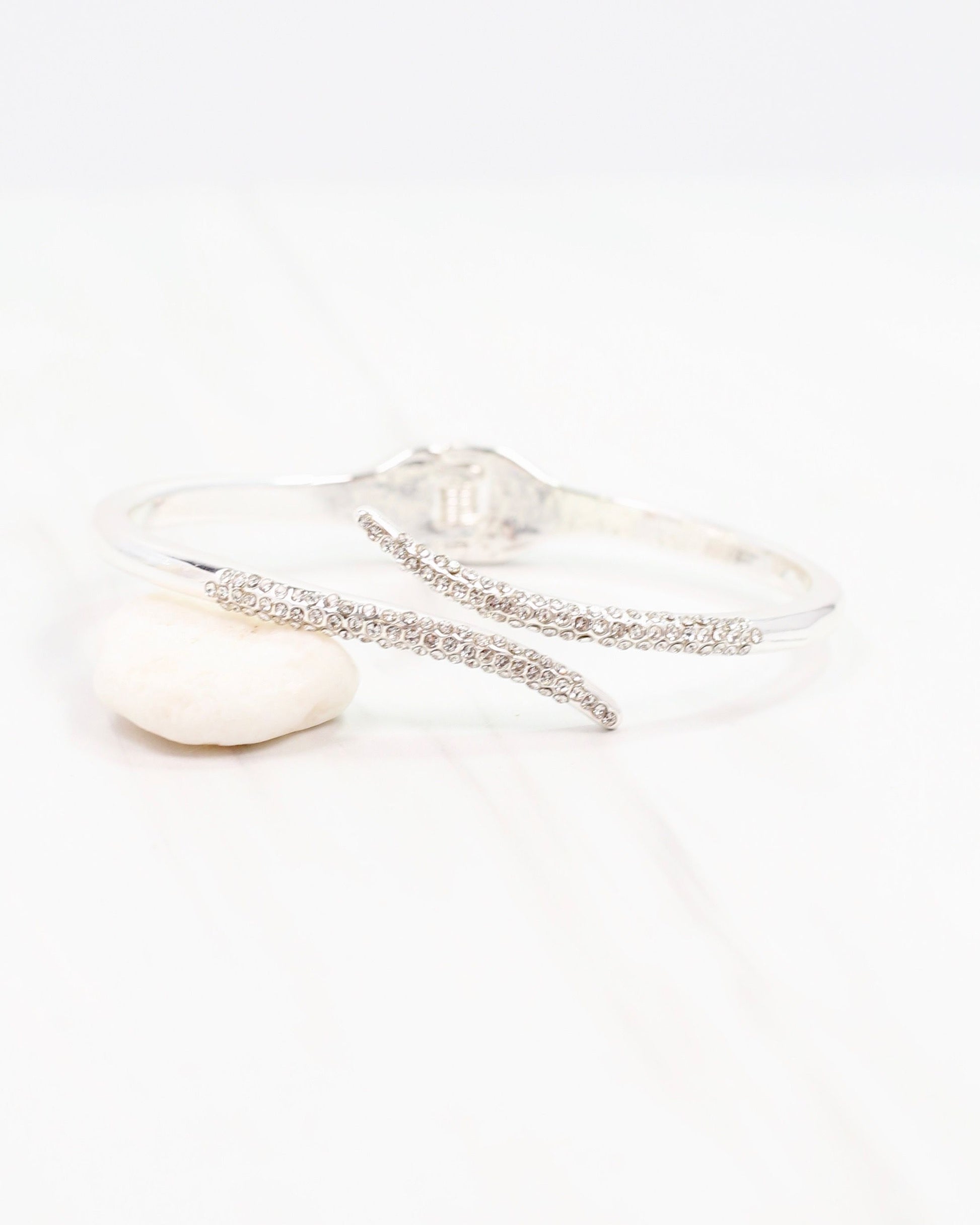 Add a sparkle to your wrist with the Gaines Bangle Bracelet in silver! This playful open hinged design is easy to wear and features dazzling cubic zirconia accents that catch the light with every move. Perfect for adding a touch of fun and shine to any outfit.