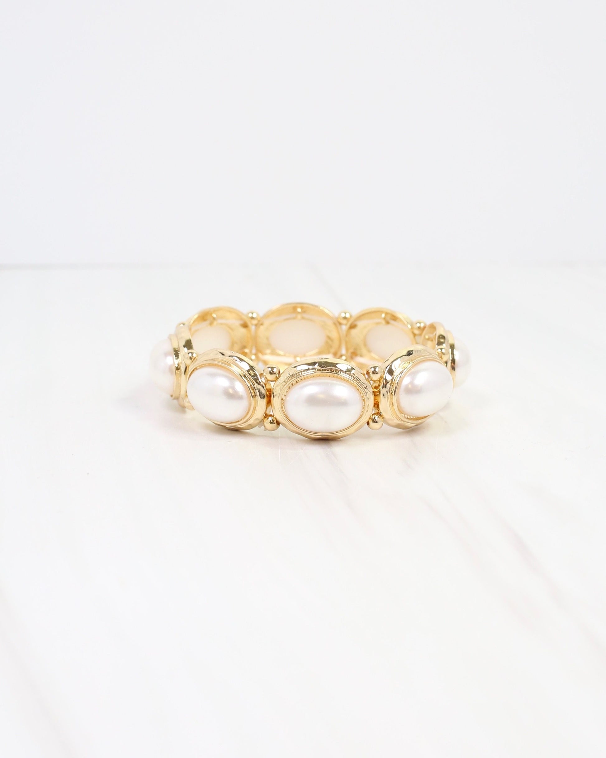 Galant Framed Pearl Stretch Bracelet Gold