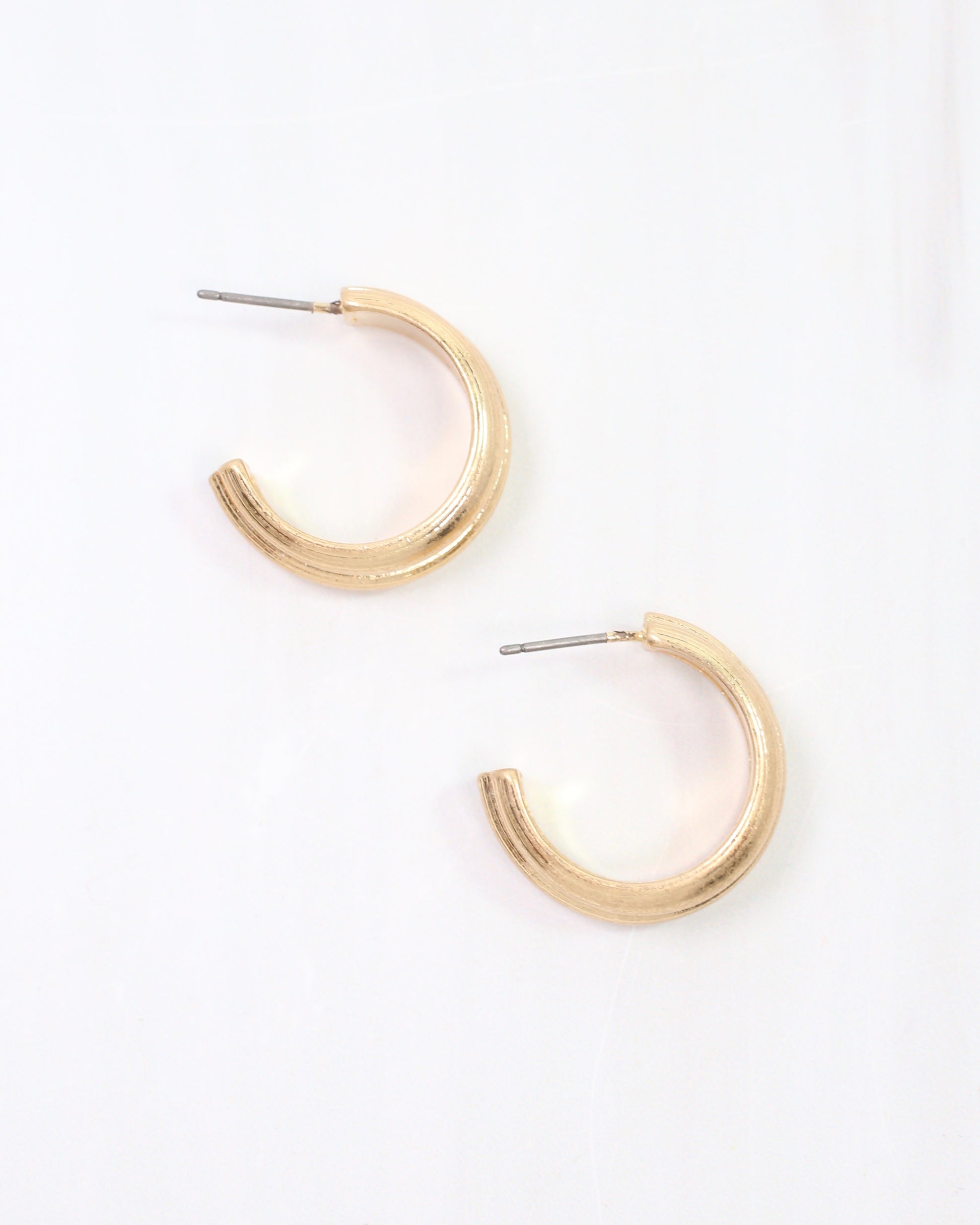 Add a touch of timeless charm with the Gilcrest Hoop Earrings in Worn Gold. These wide, ribbed hoops bring playful texture to your look while the titanium posts ensure all-day comfort and durability. Perfect for adding a bit of bold sparkle to any outfit!
