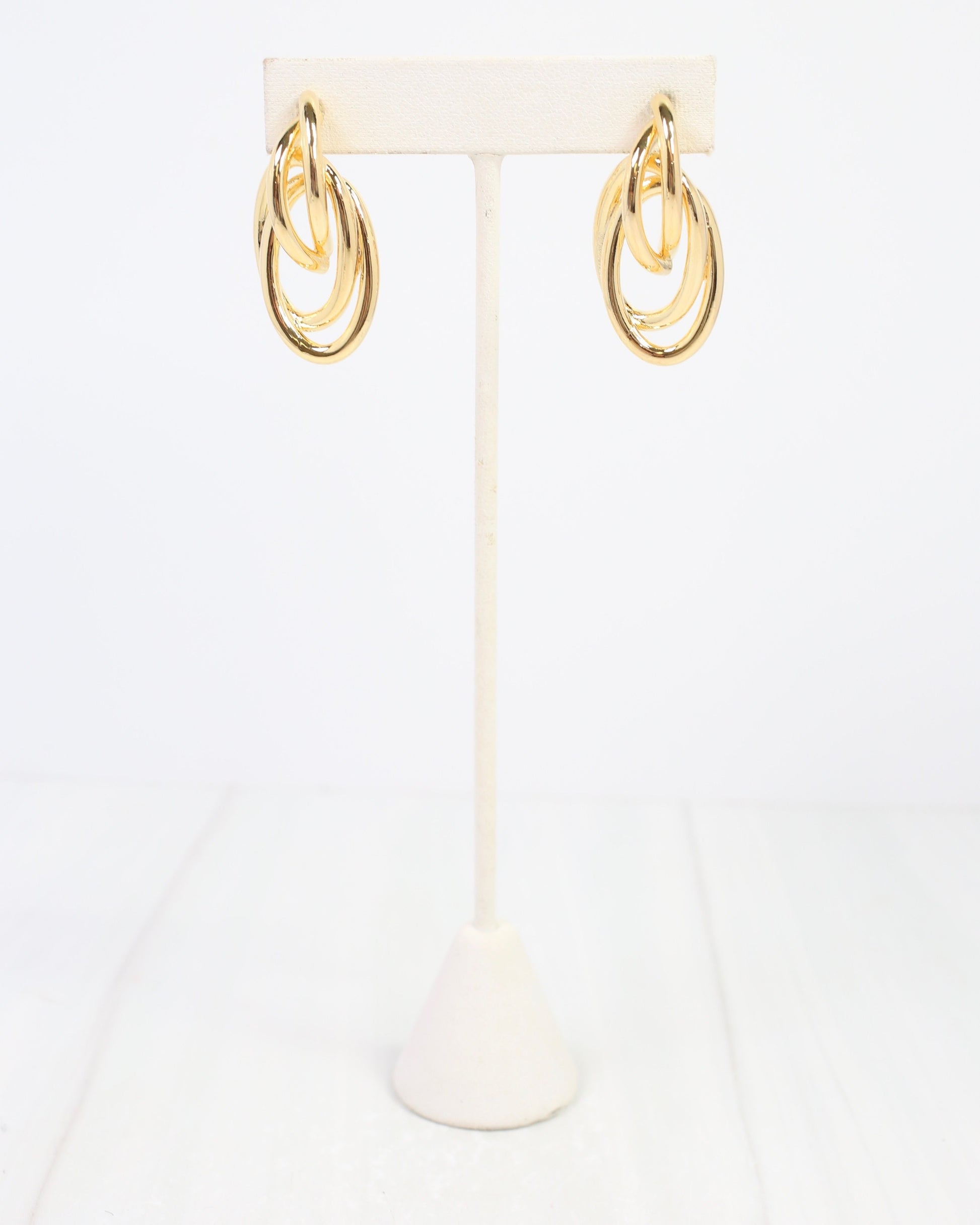 Elevate your style with the Gray Court Oval Earring in gold. This shiny, intertwined oval drop earring offers a chic and polished look that complements any outfit. Crafted from gold-dipped brass, it combines durability with a fashionable shine, perfect for adding a fun touch to your accessory collection.